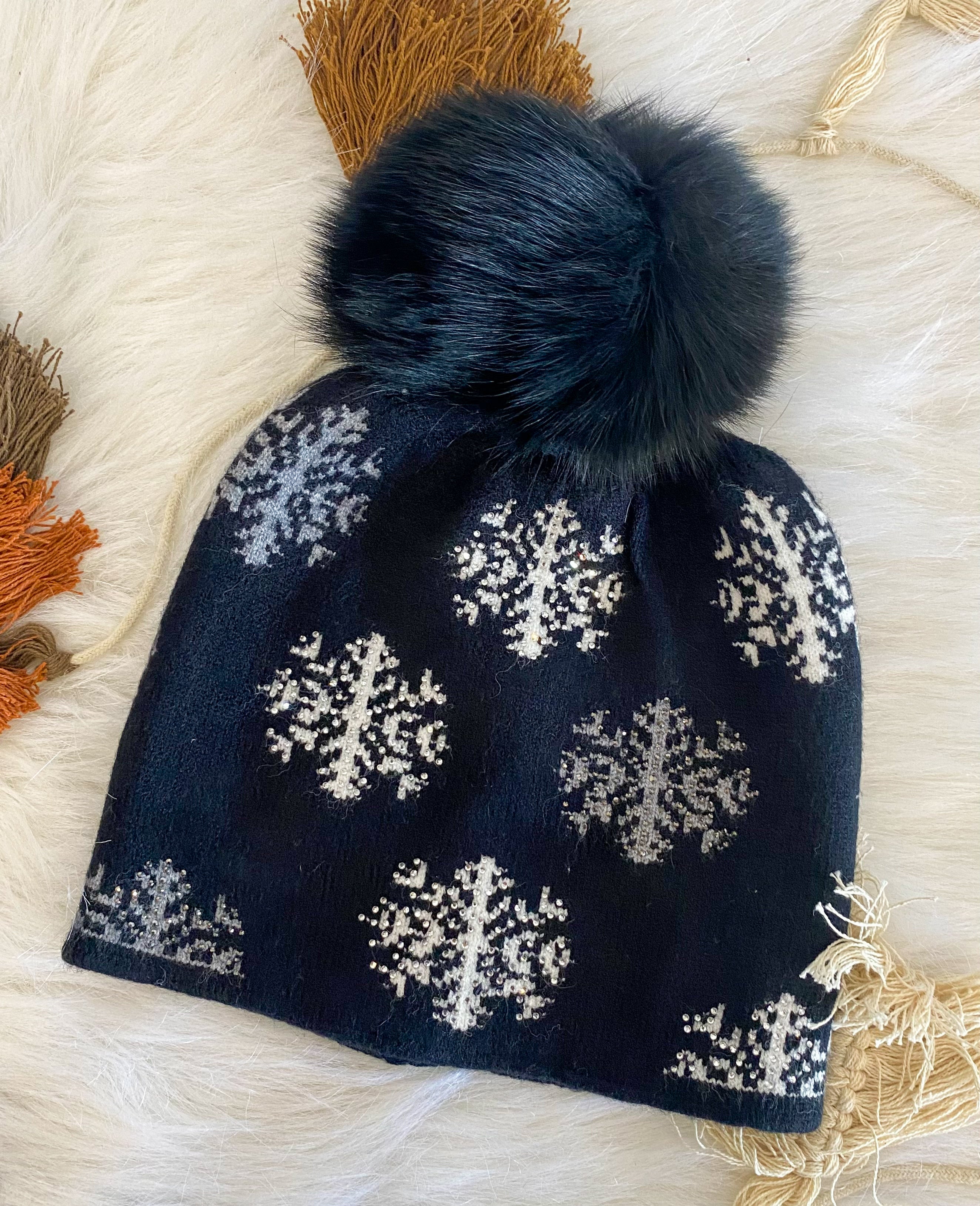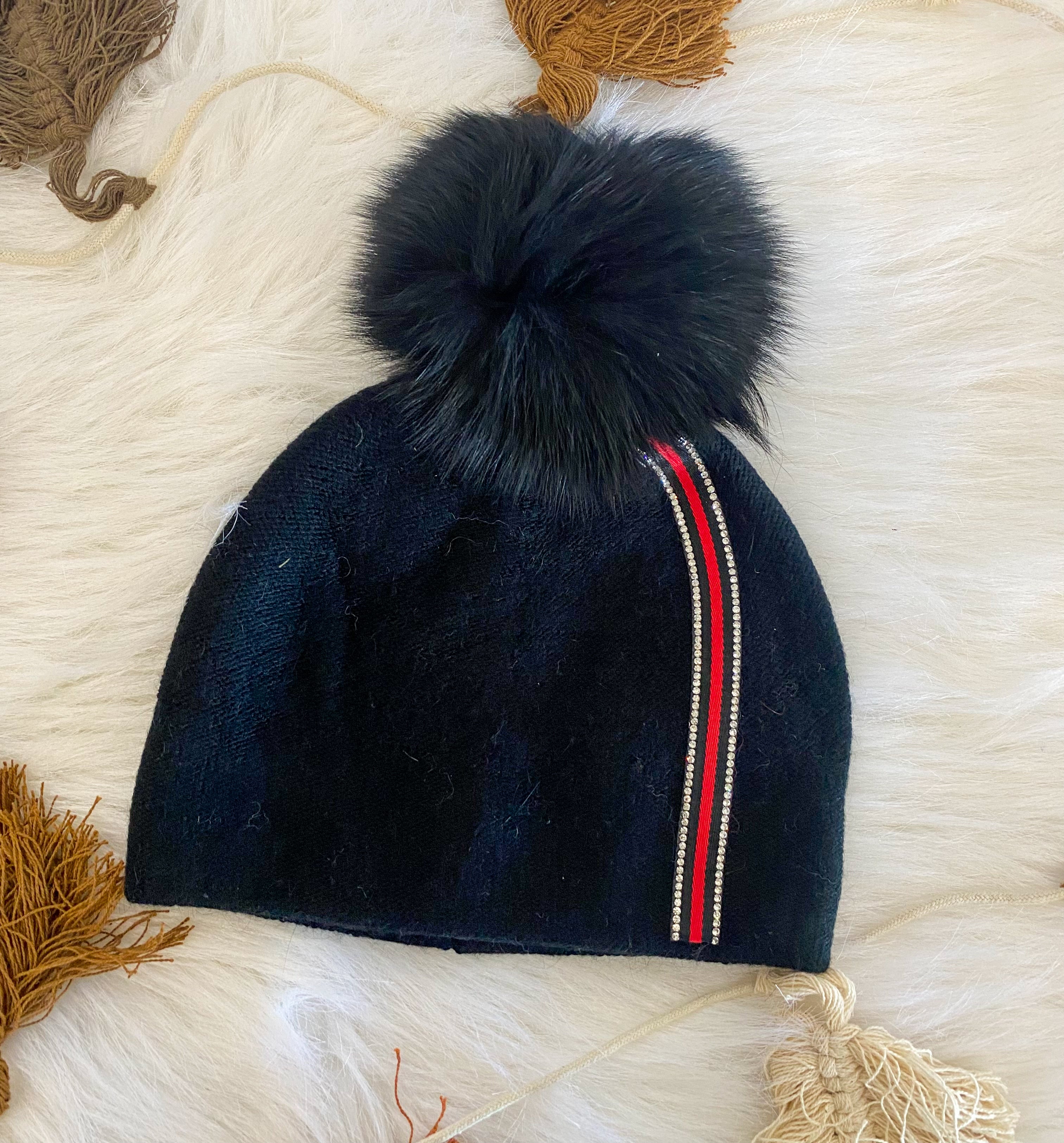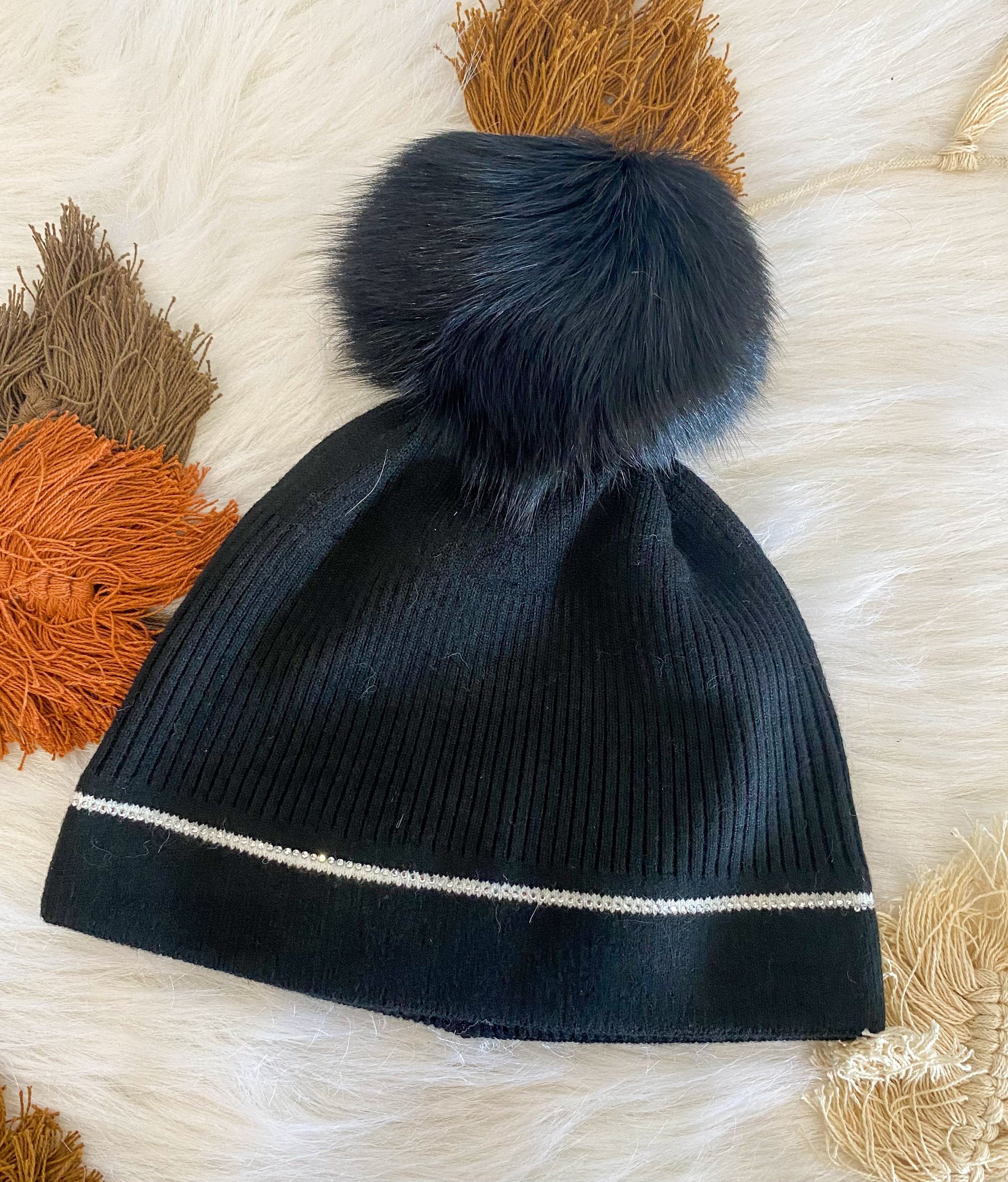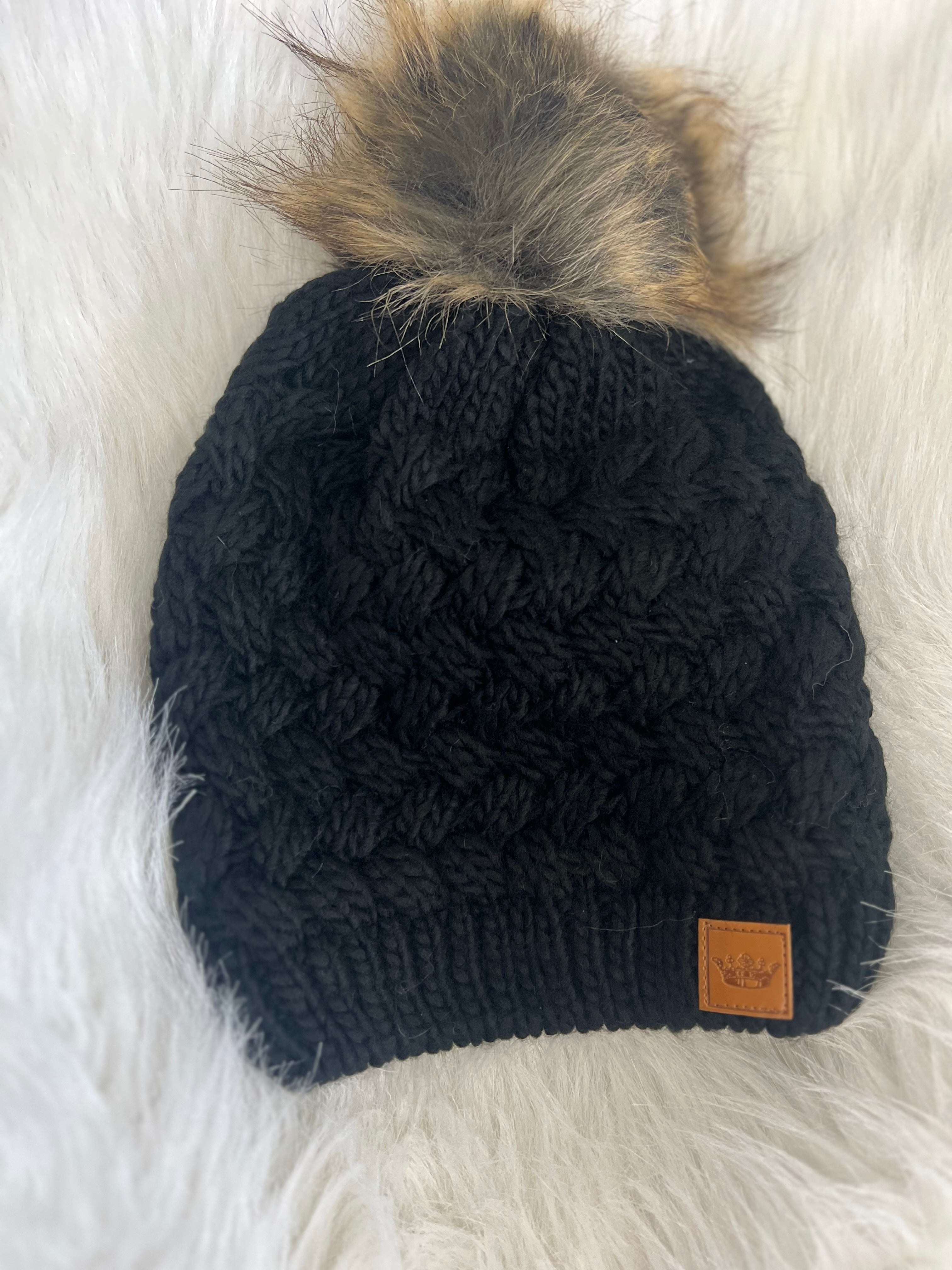 Knit beanie W/ Fox Pom