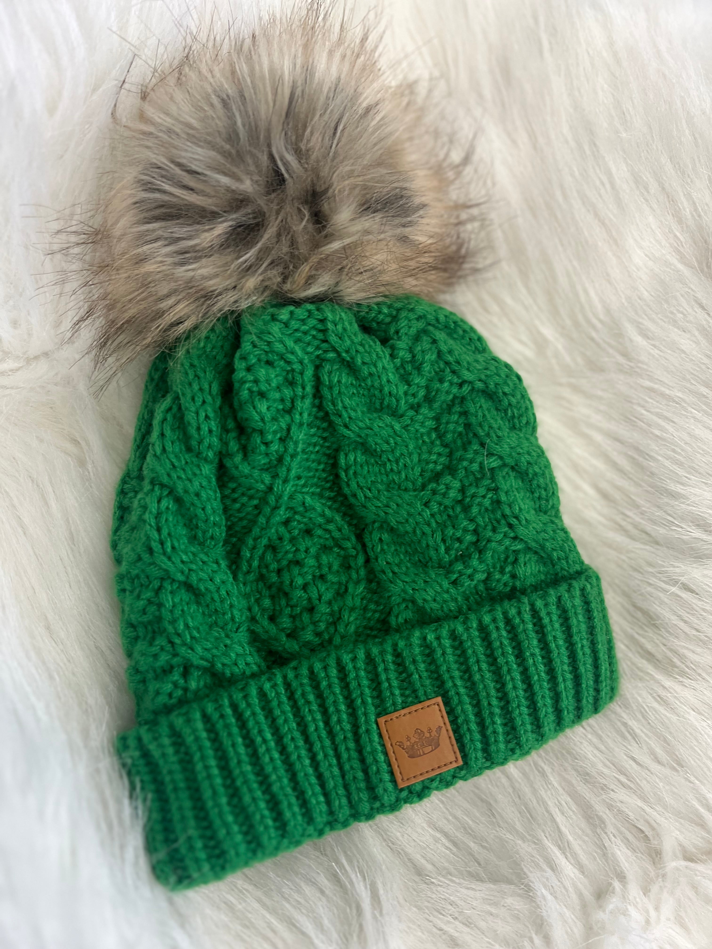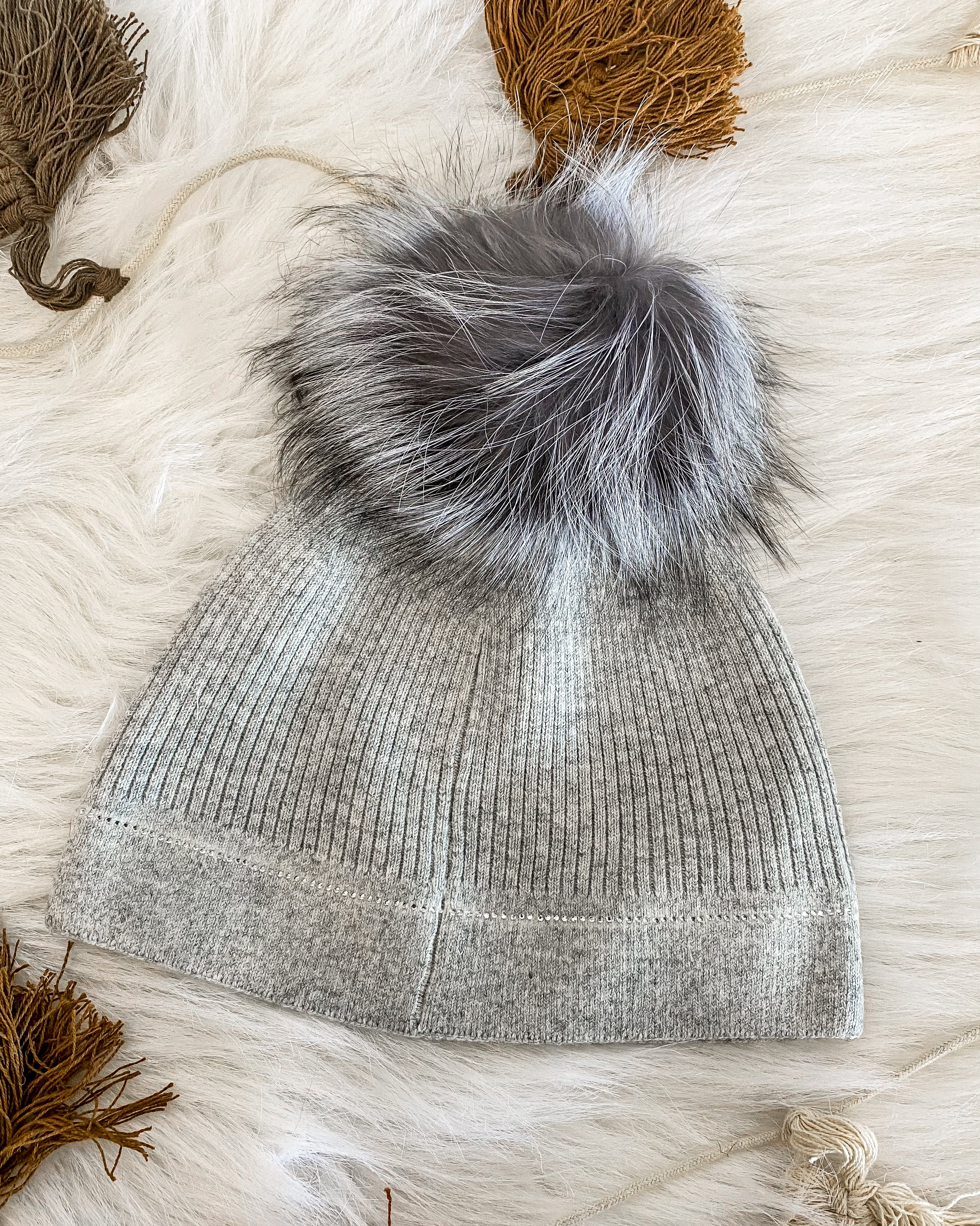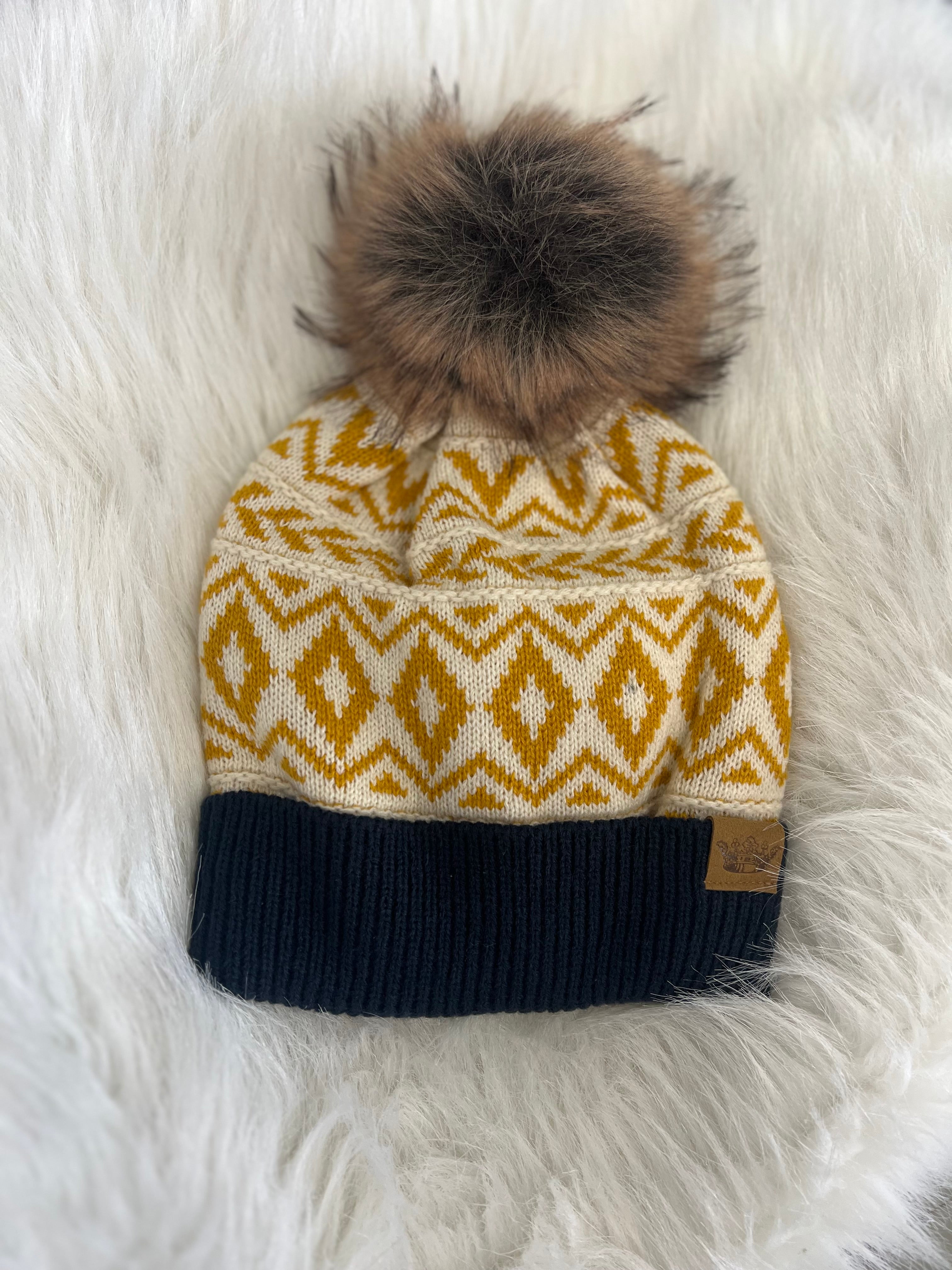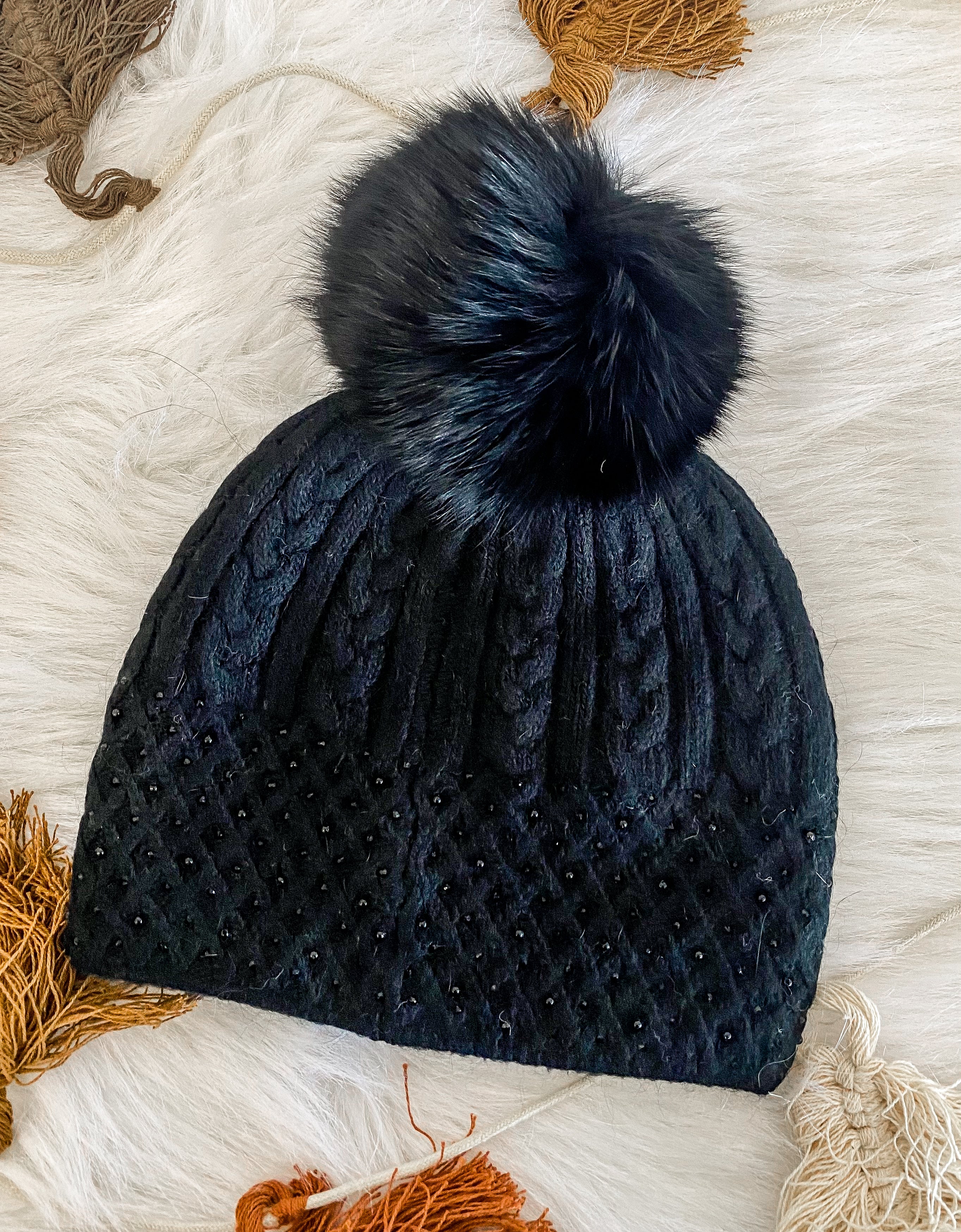 Knit beanie W/ Fox Pom