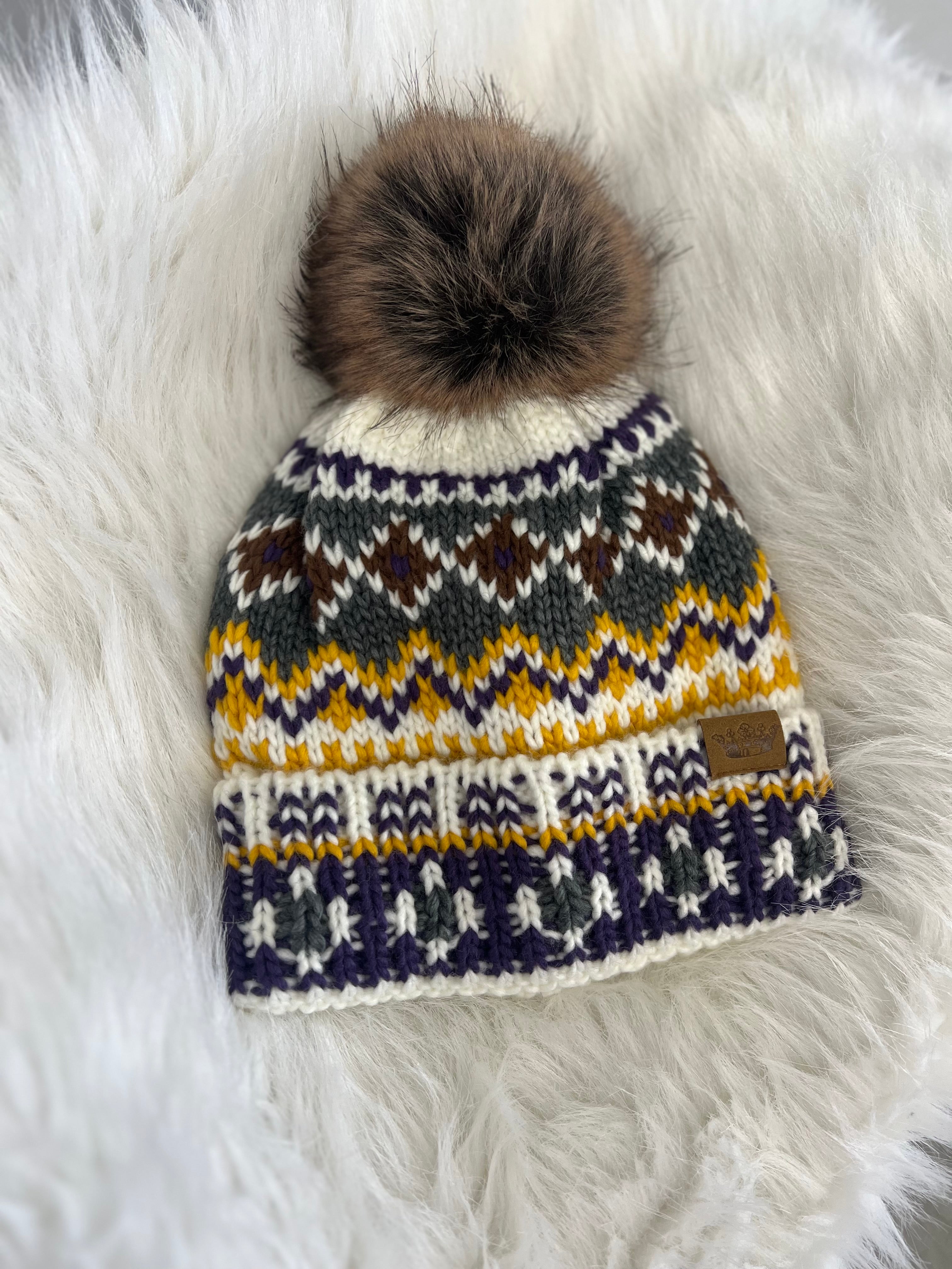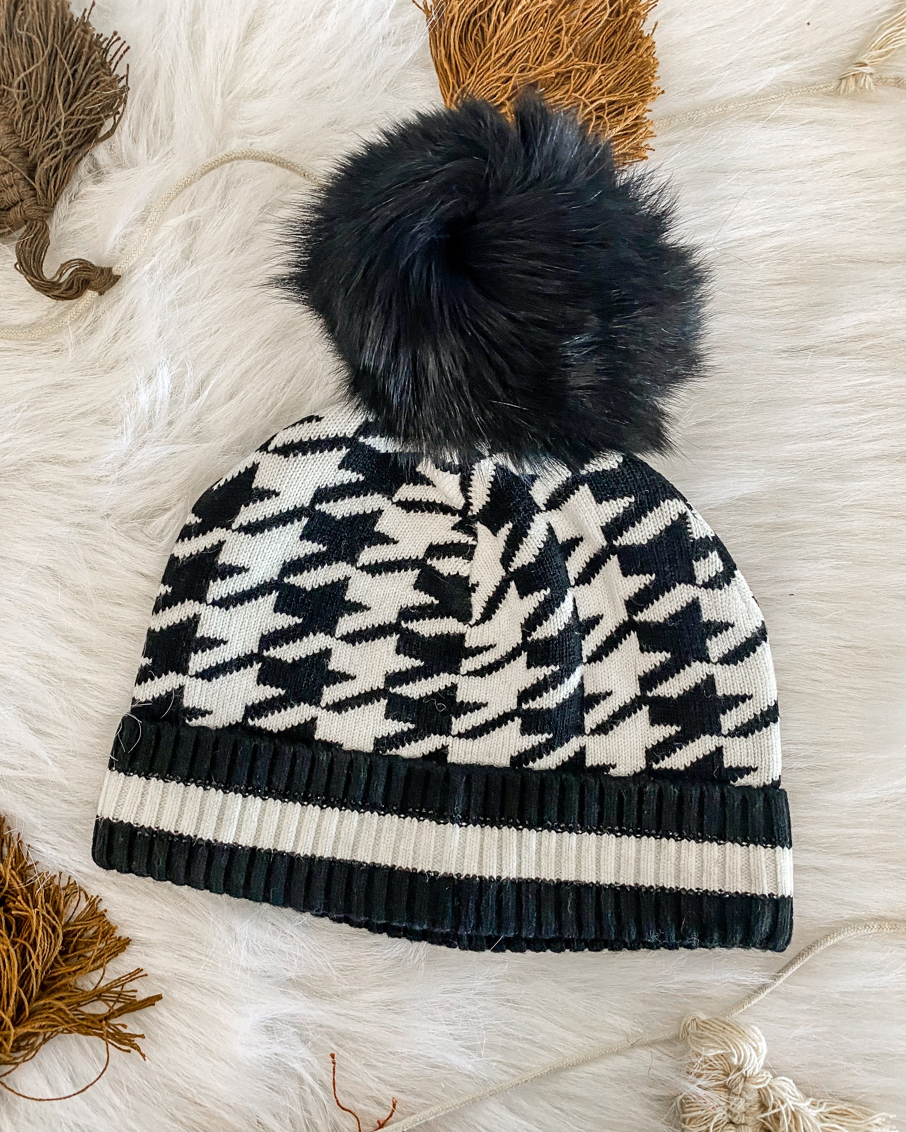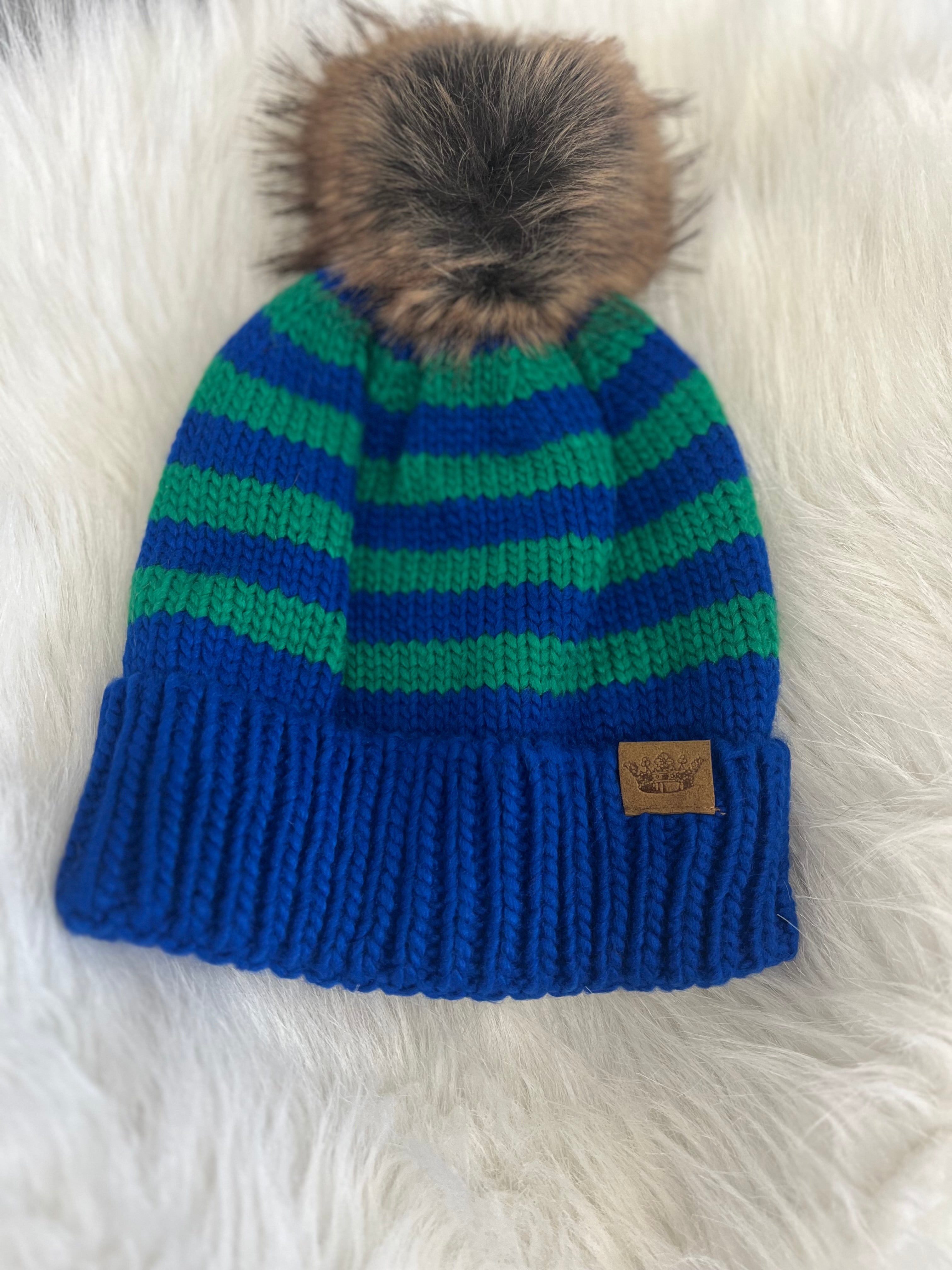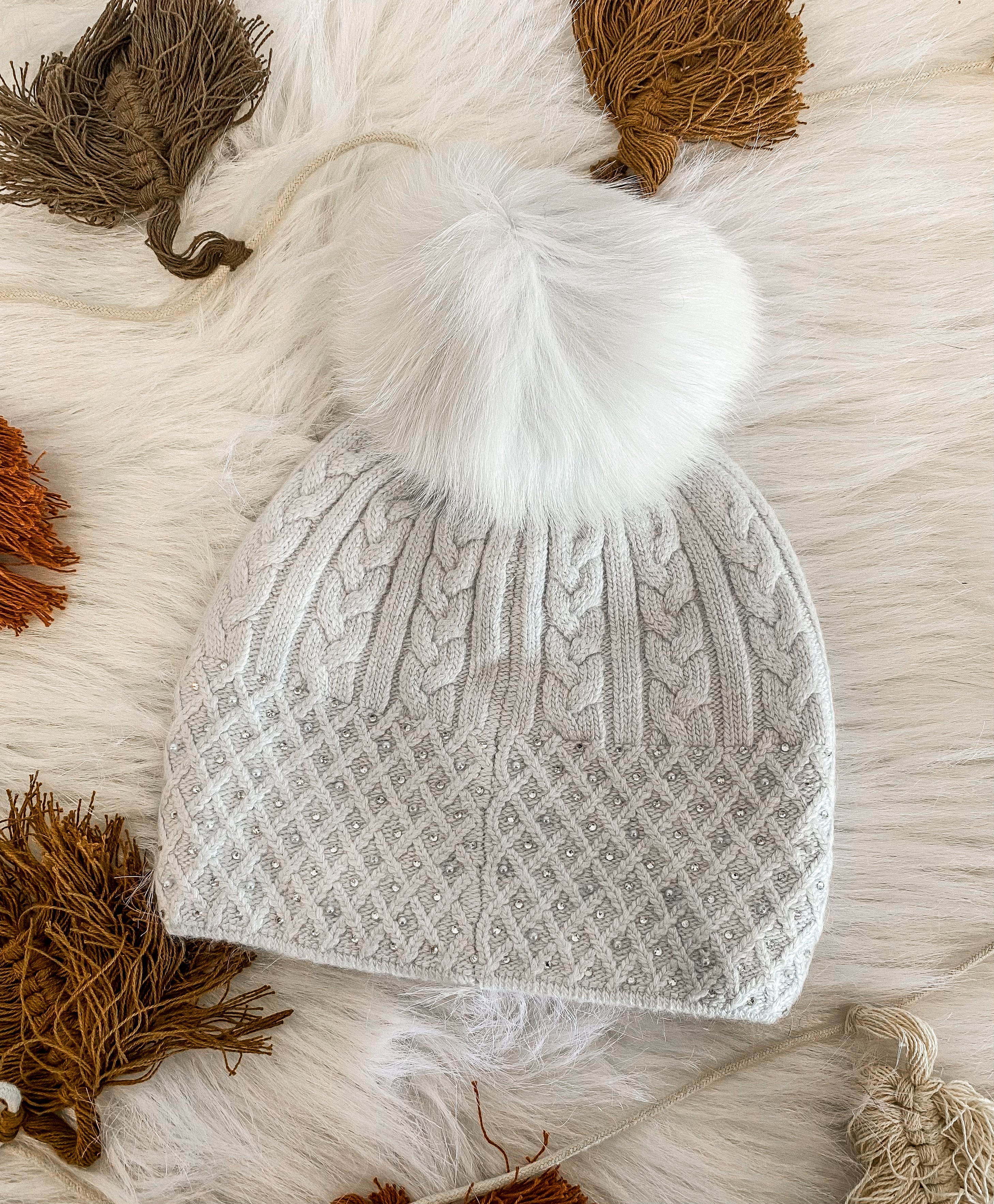Knit beanie W/ Fox Pom
