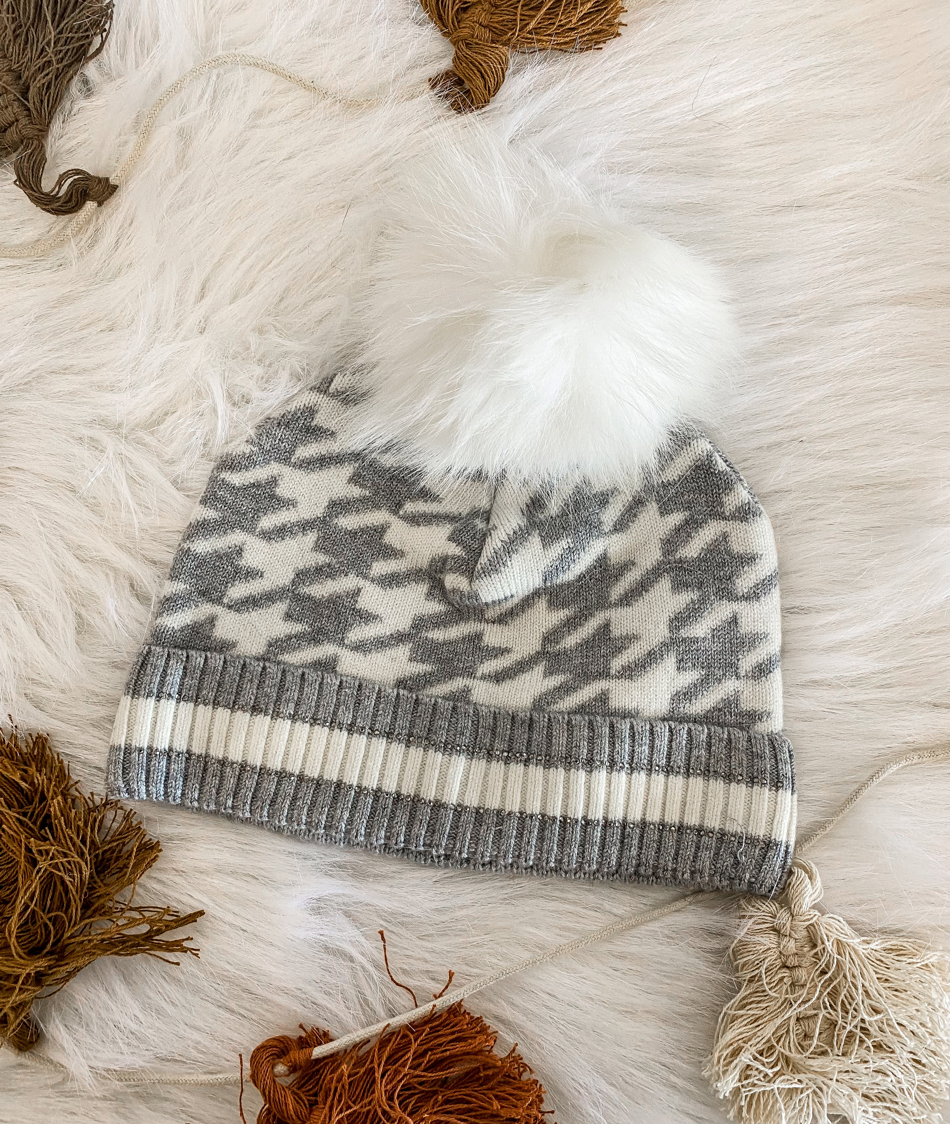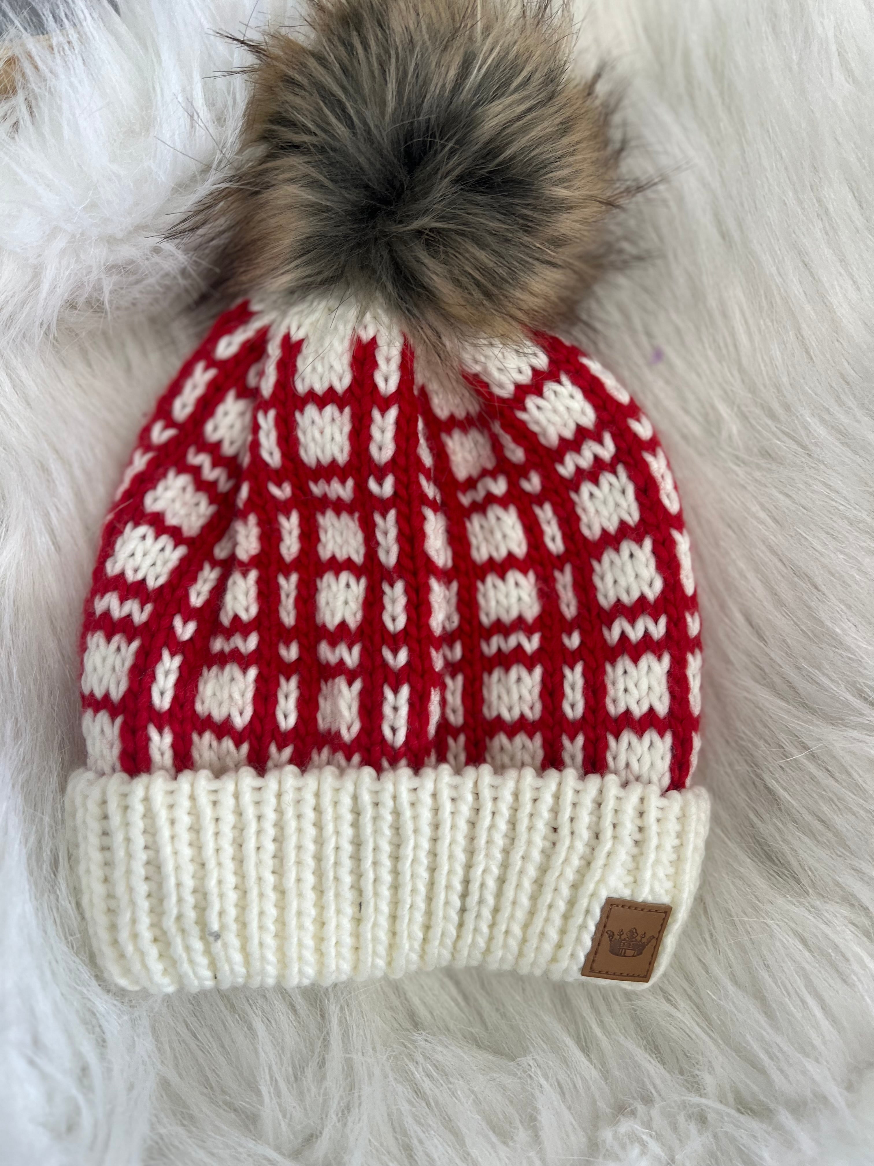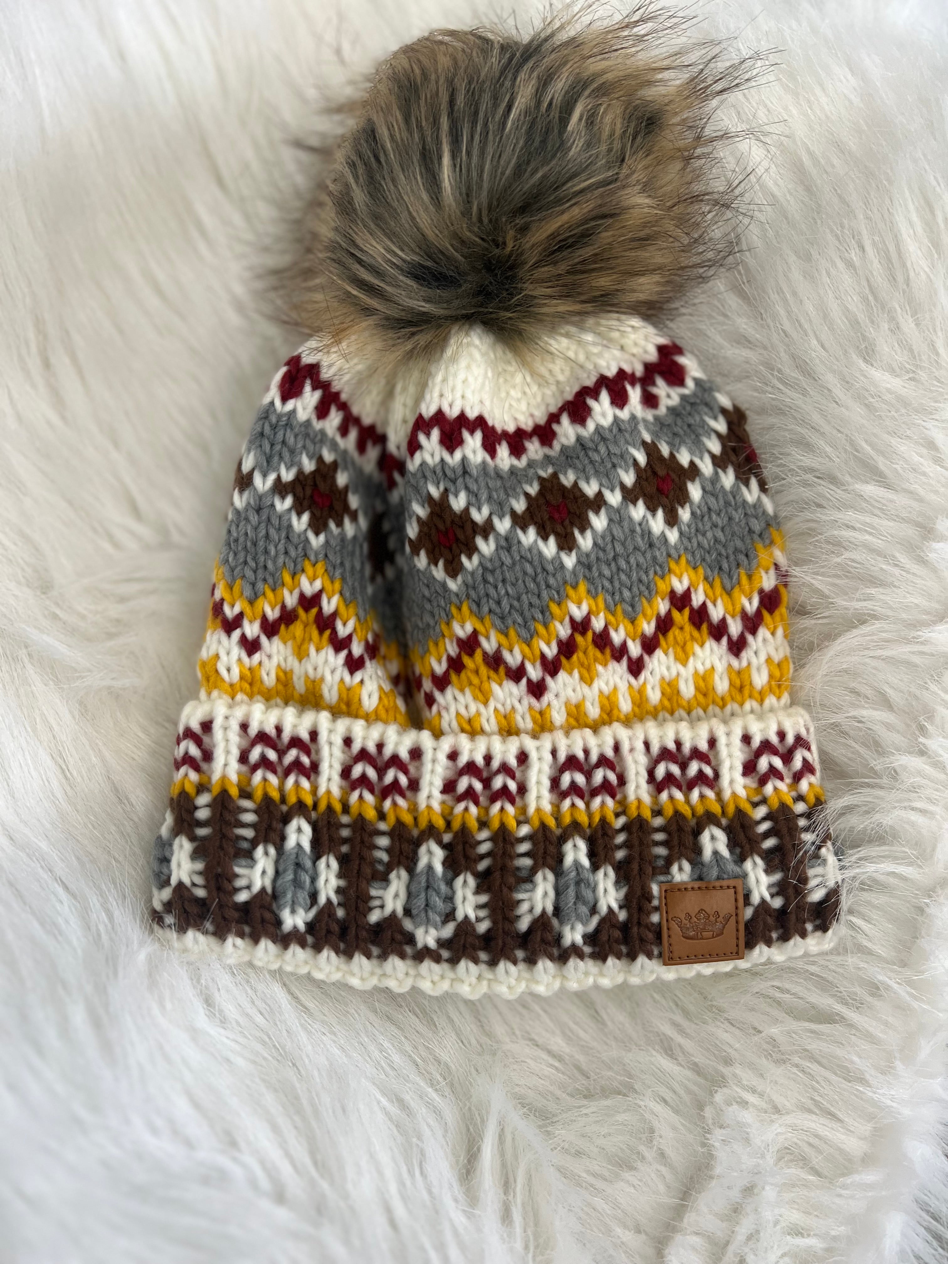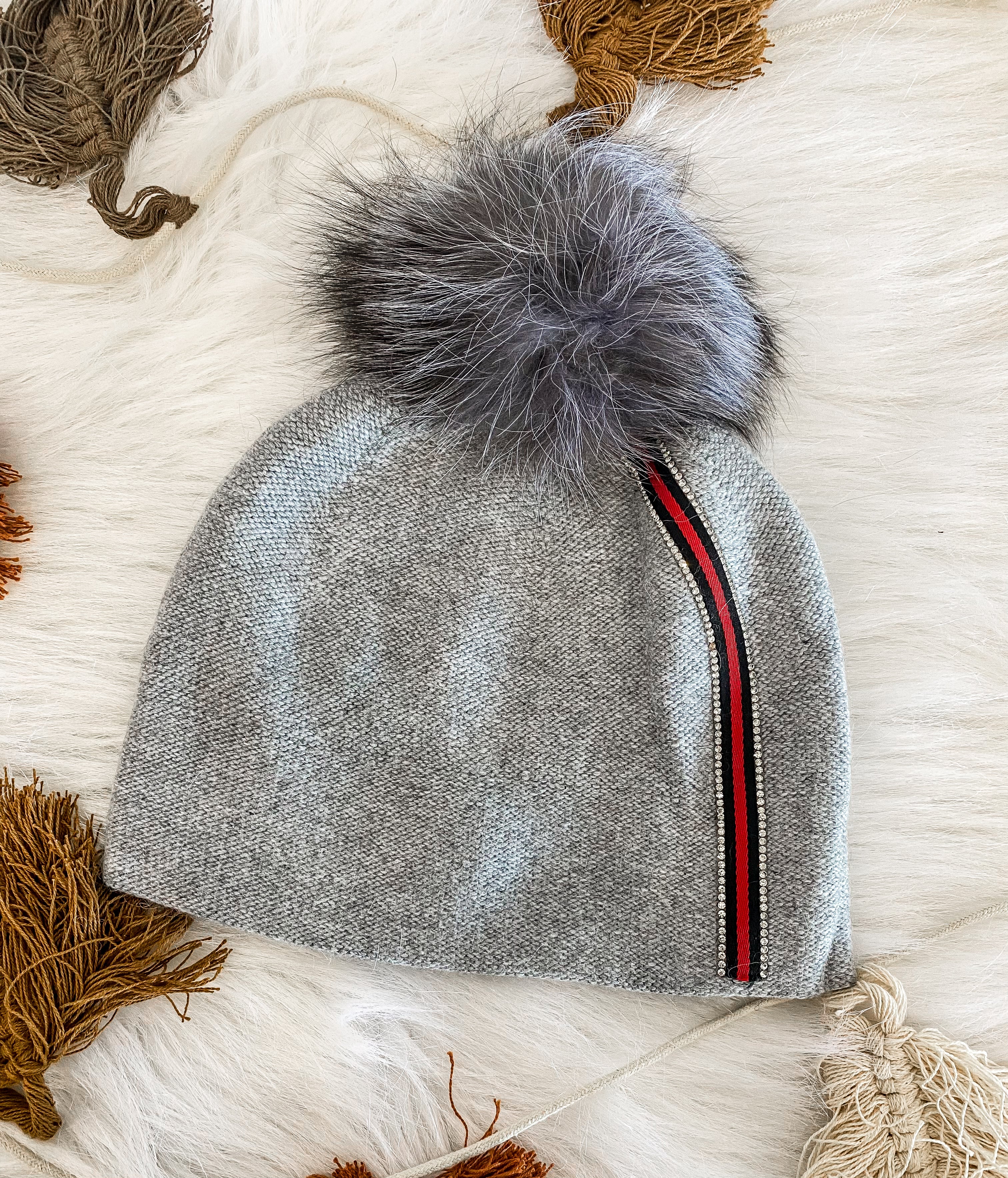 Knit beanie W/ Fox Pom
