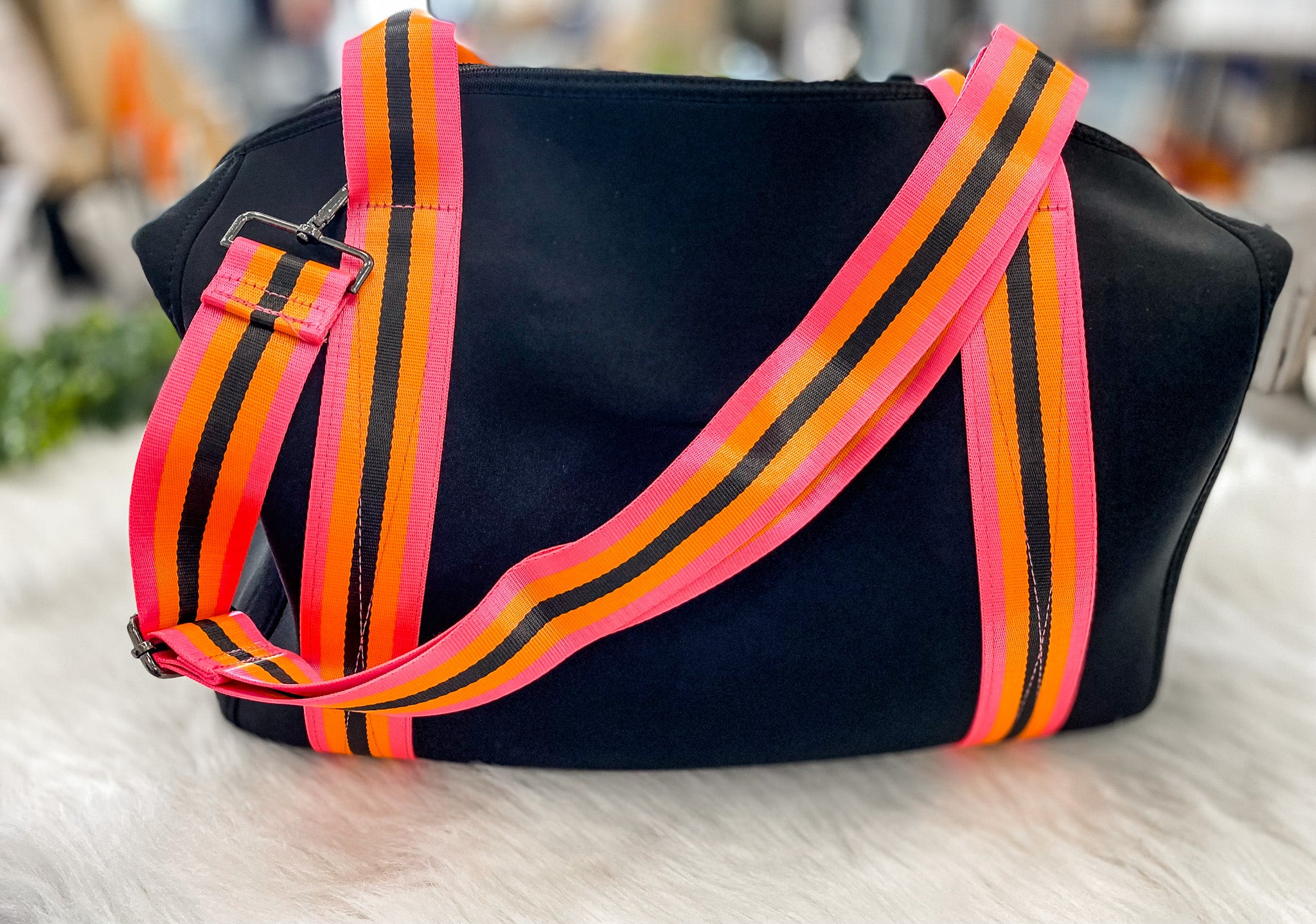 pink and orange crossbody w/fur detail