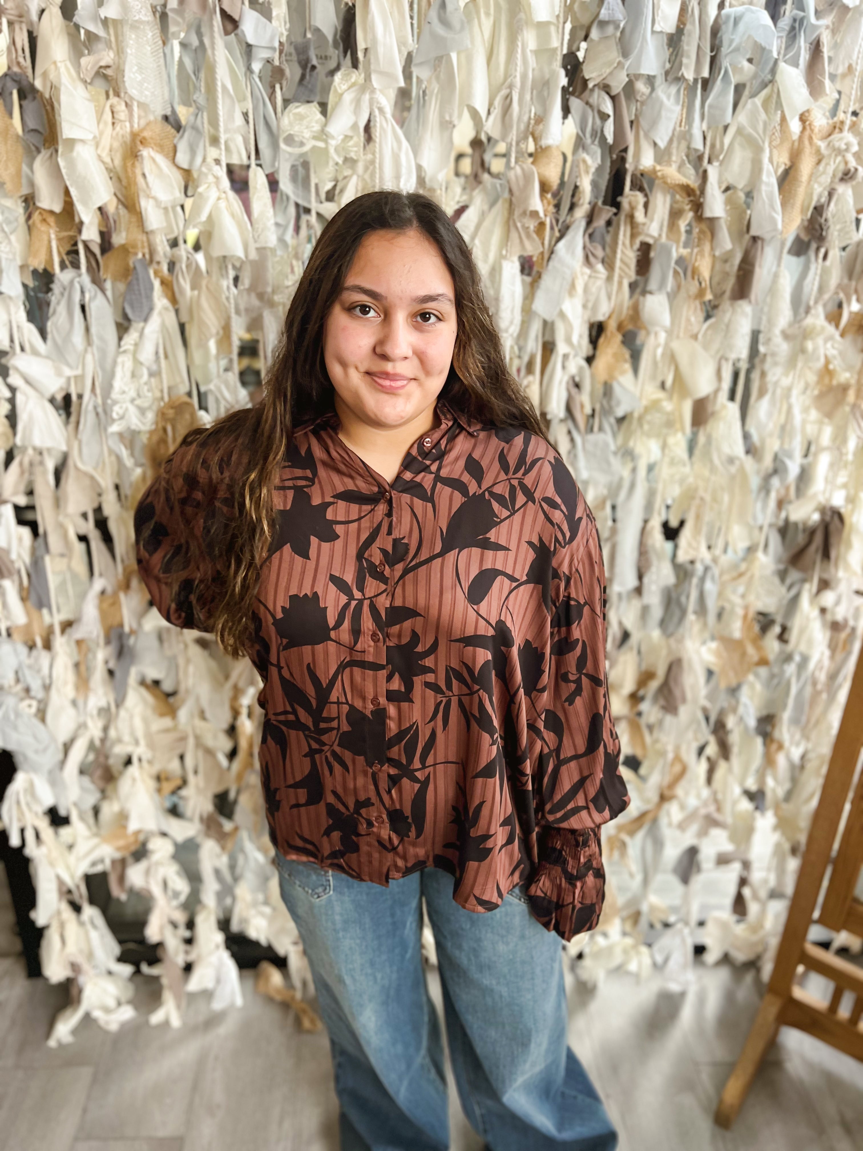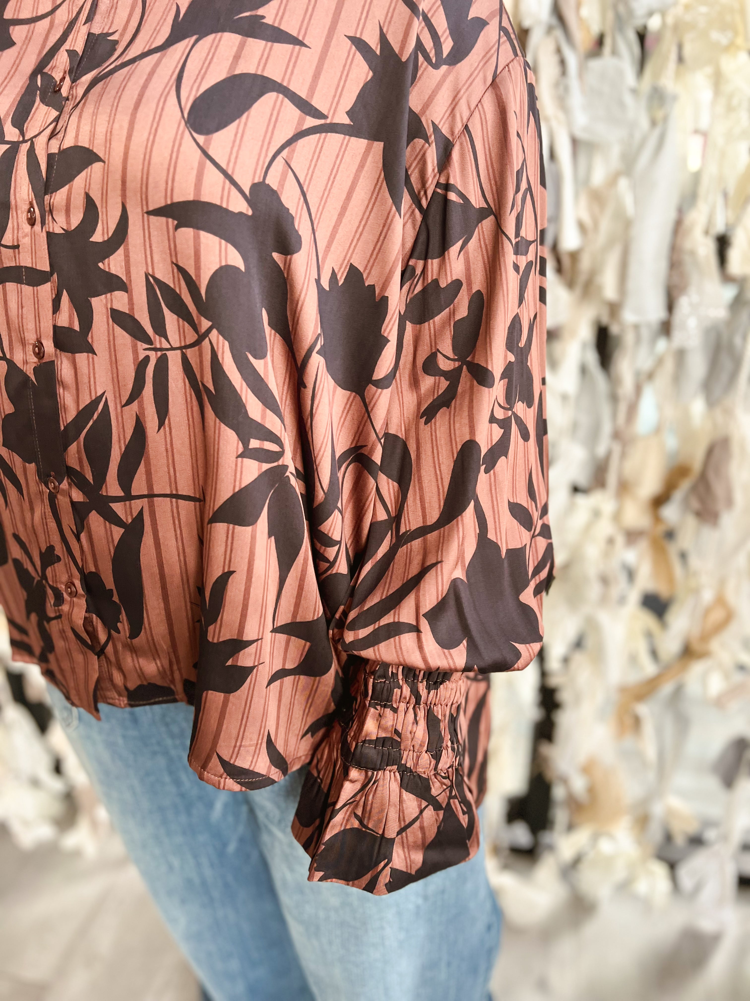 Button Front Long Sleeve Blouse