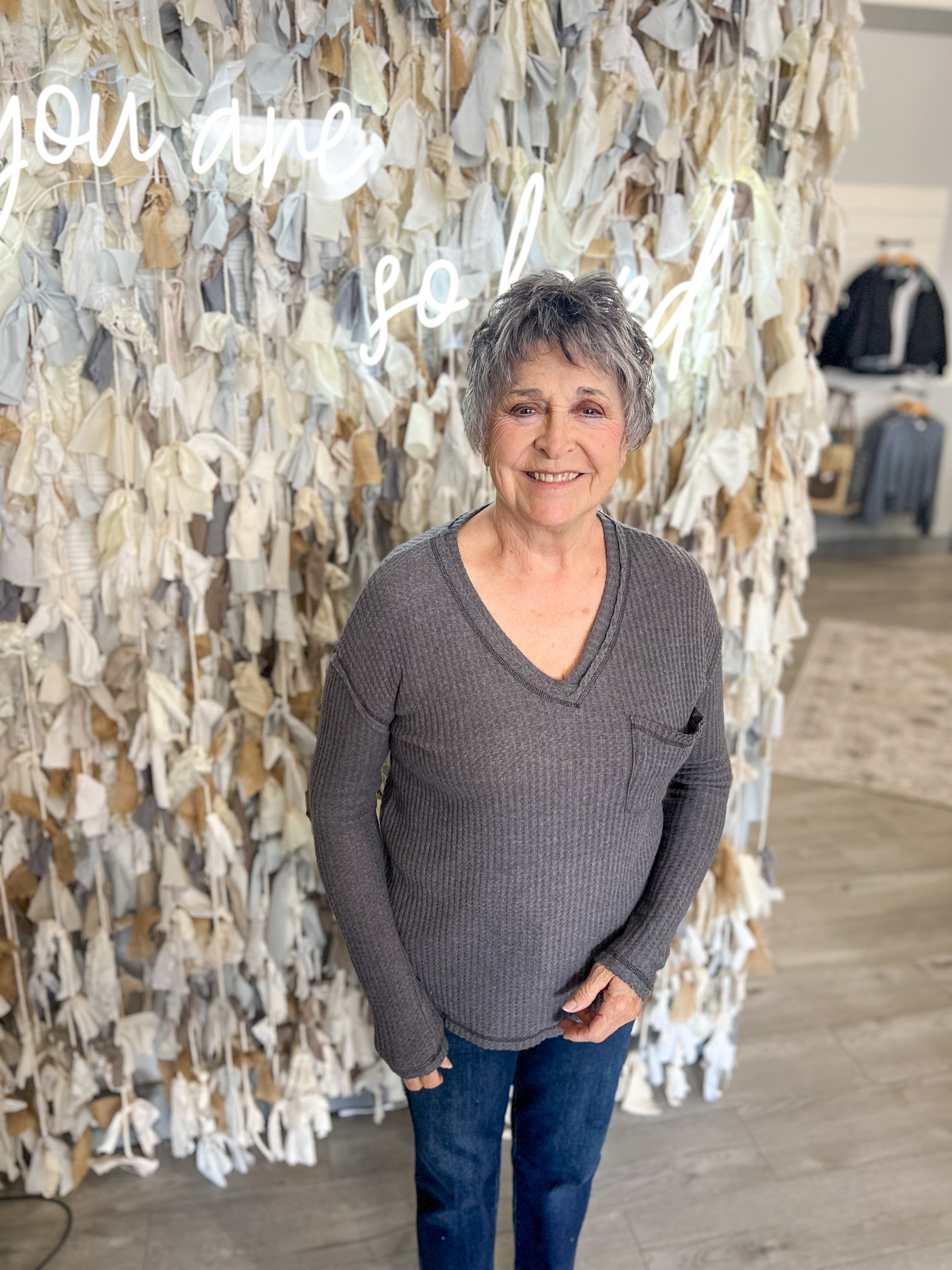 Brushed Waffle Knit V Neck