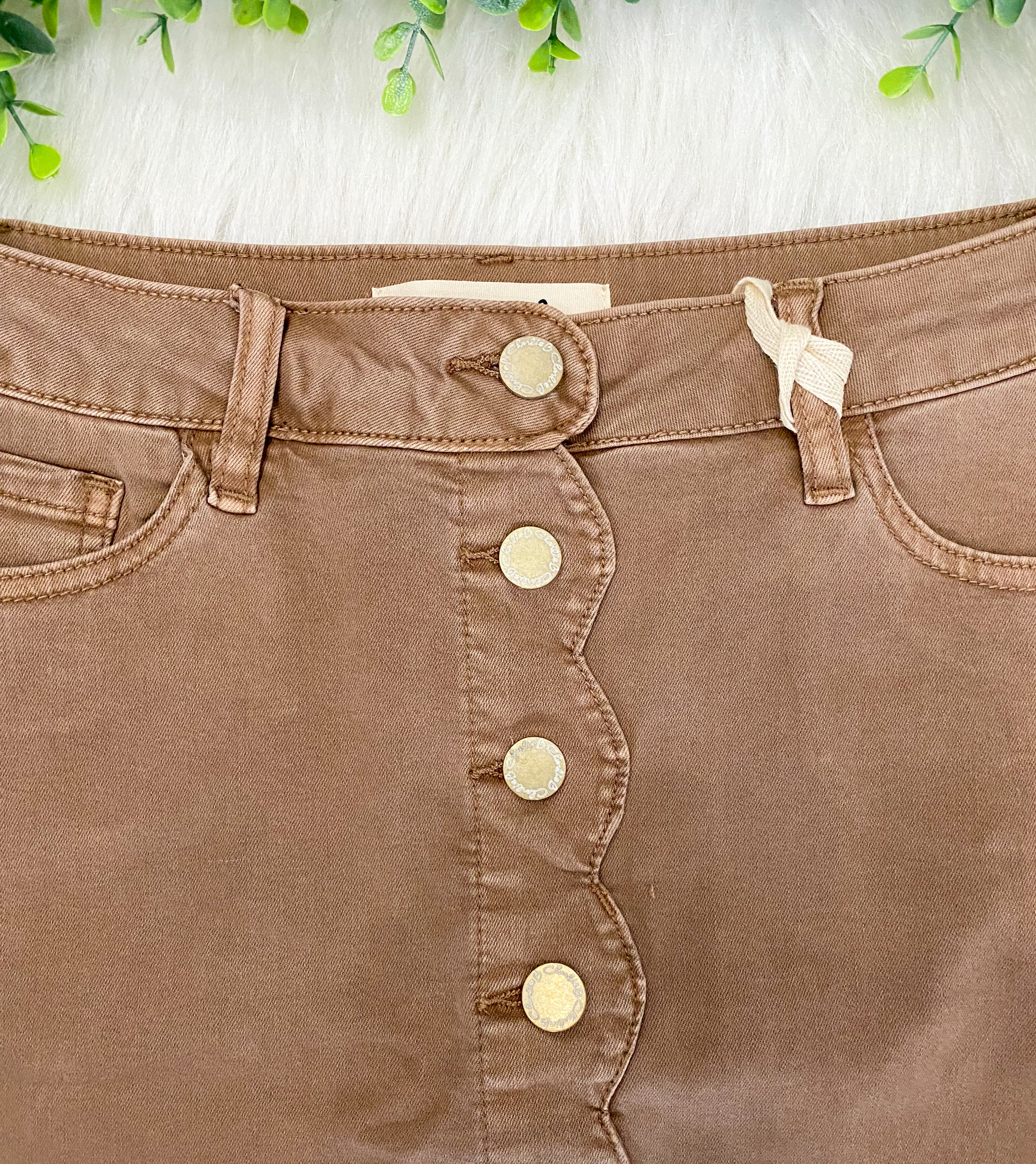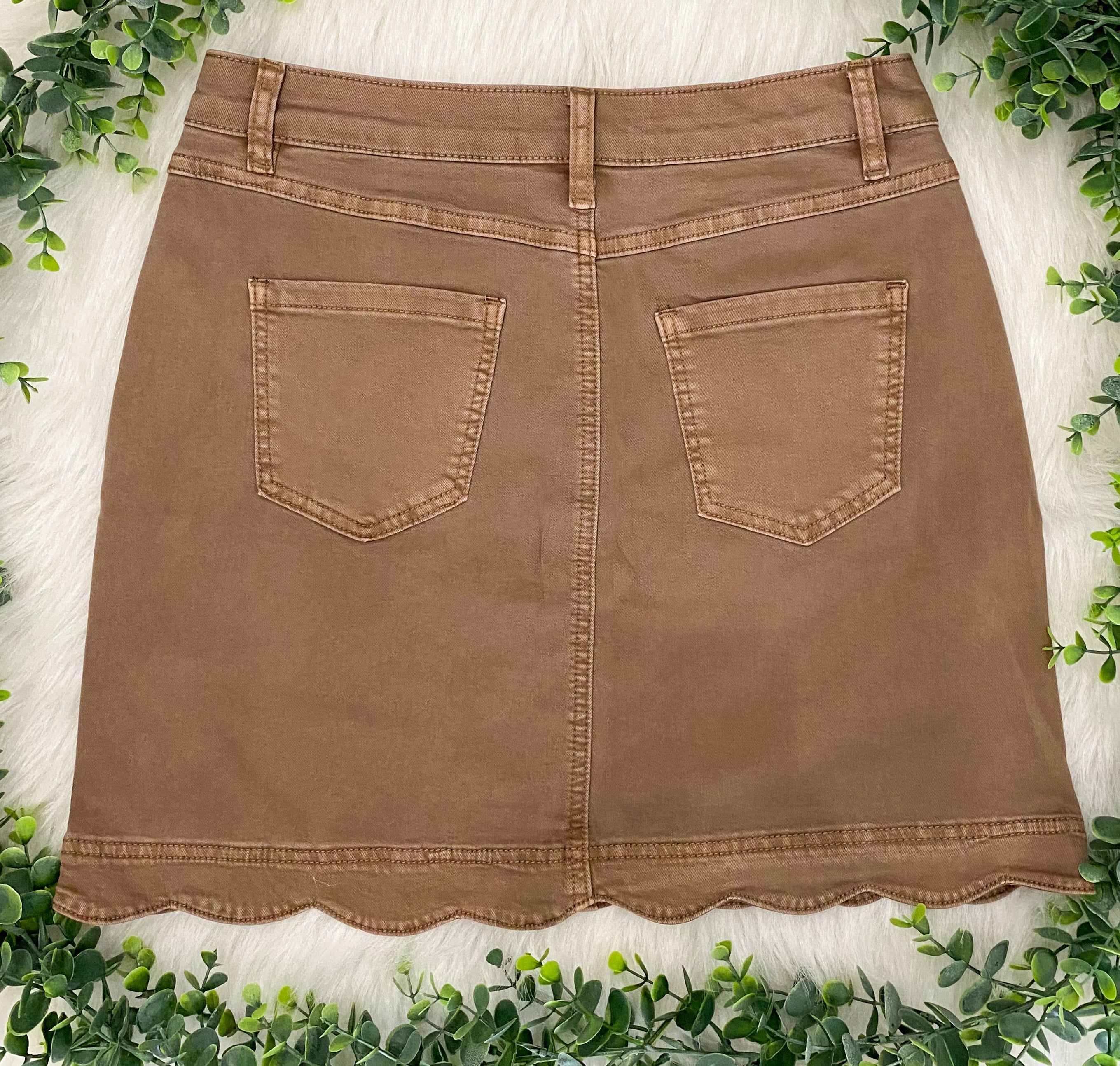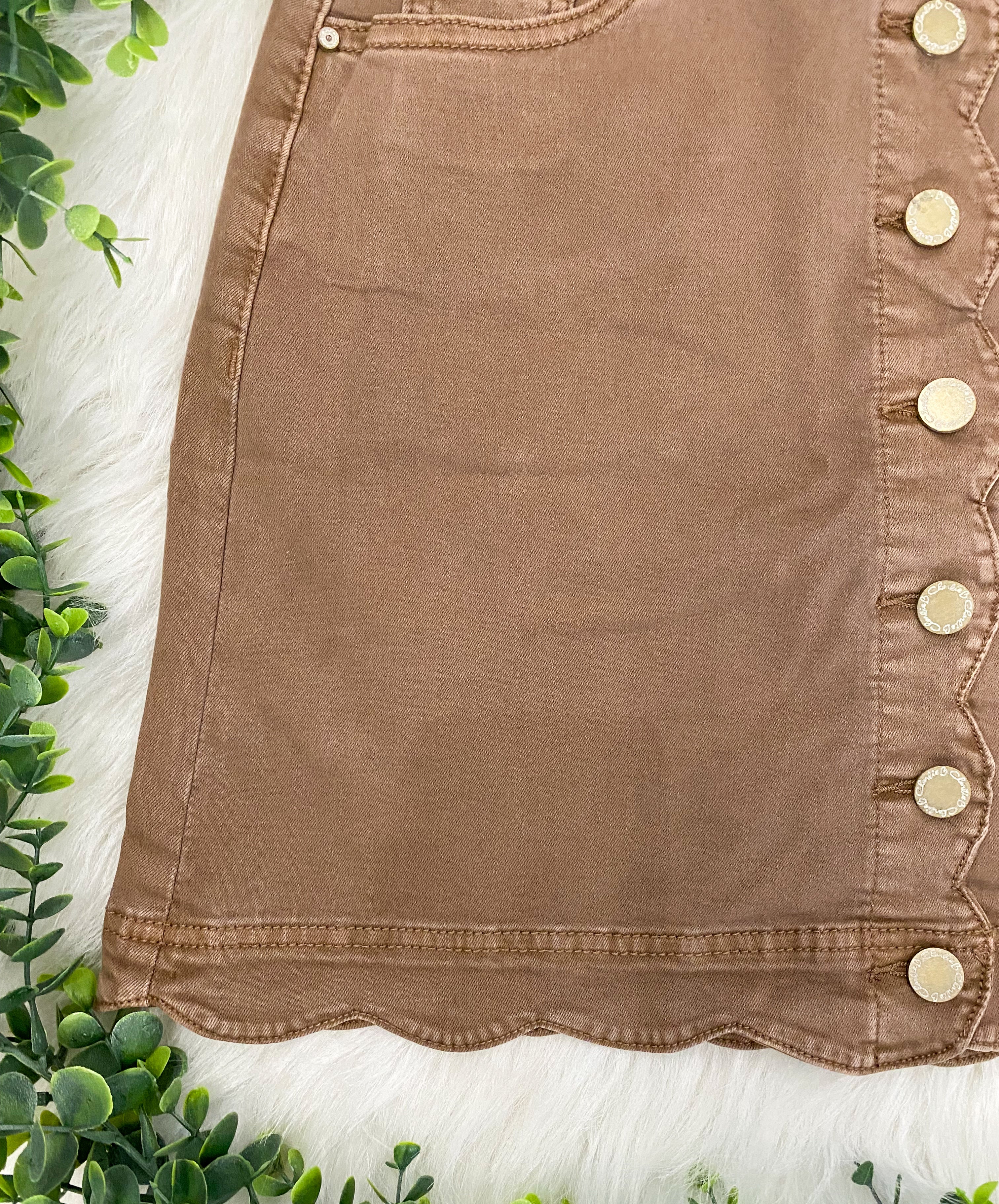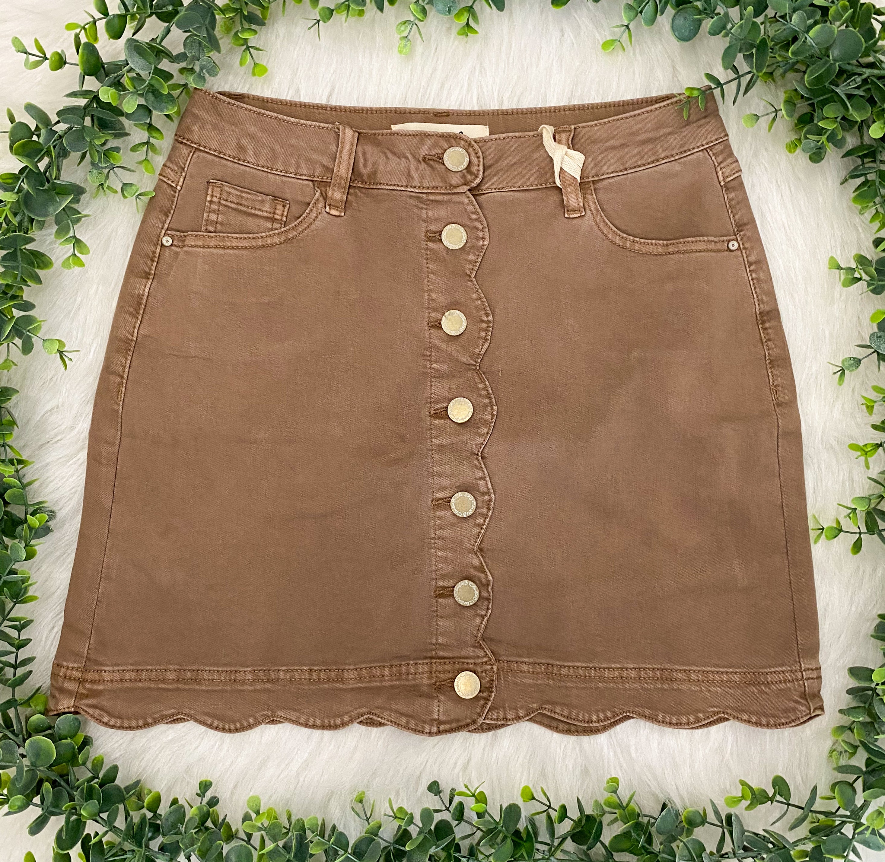 Button front skort with scallop hem