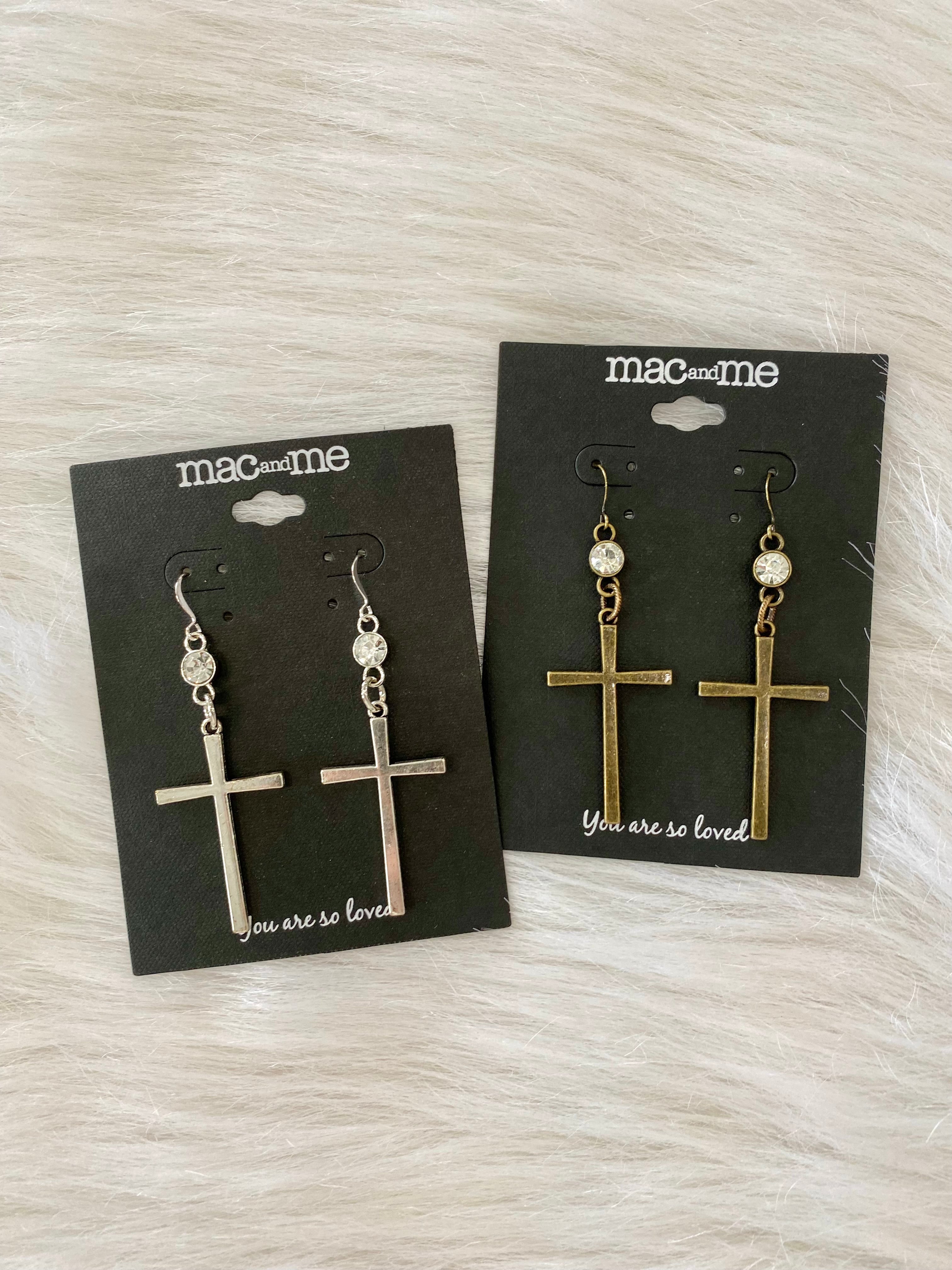 Mac and Me Vintage Inspired Small Cross Earrings W/ Signature Crystal