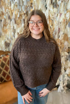 Cable Knit Sweater W/ Ribbed Detail