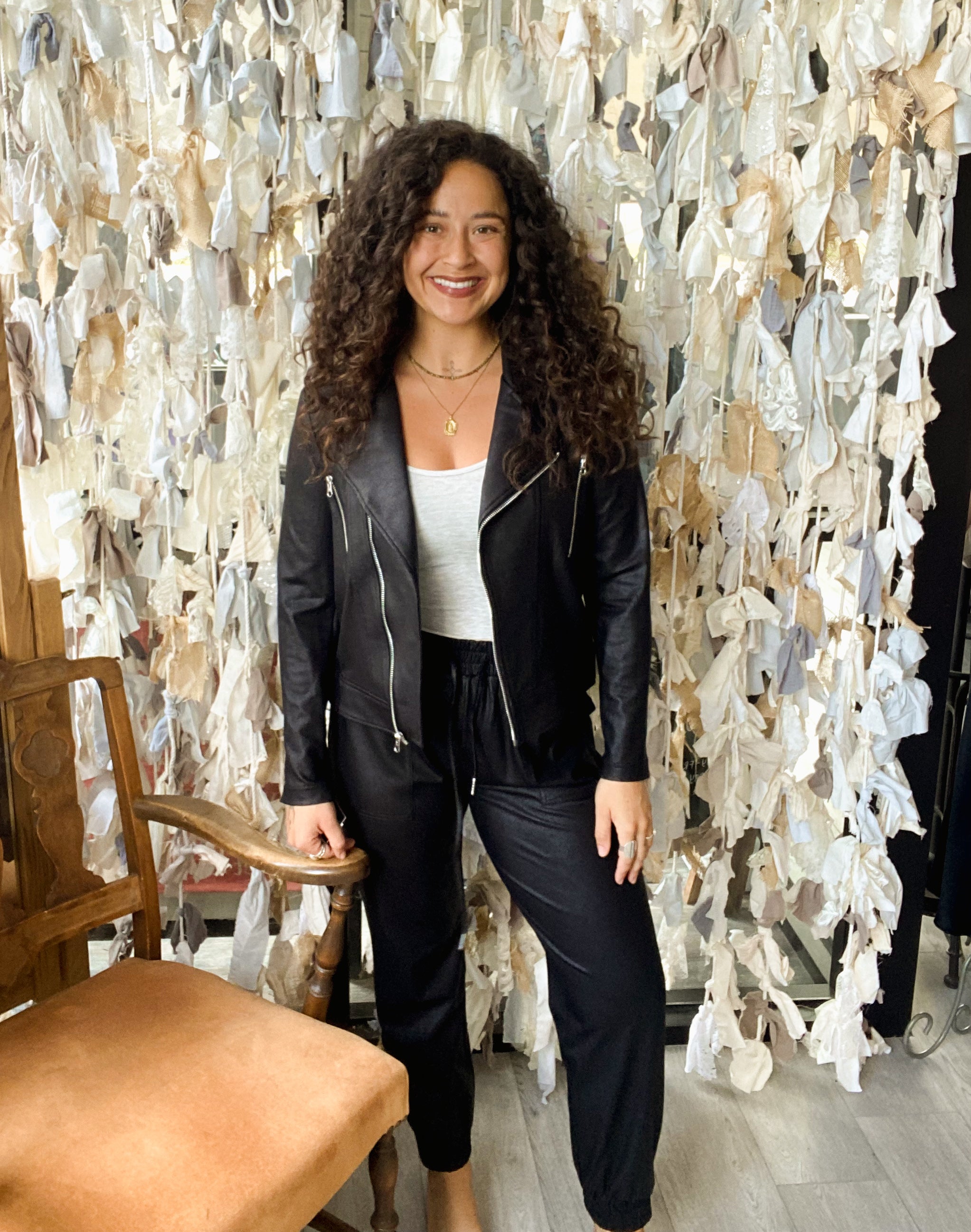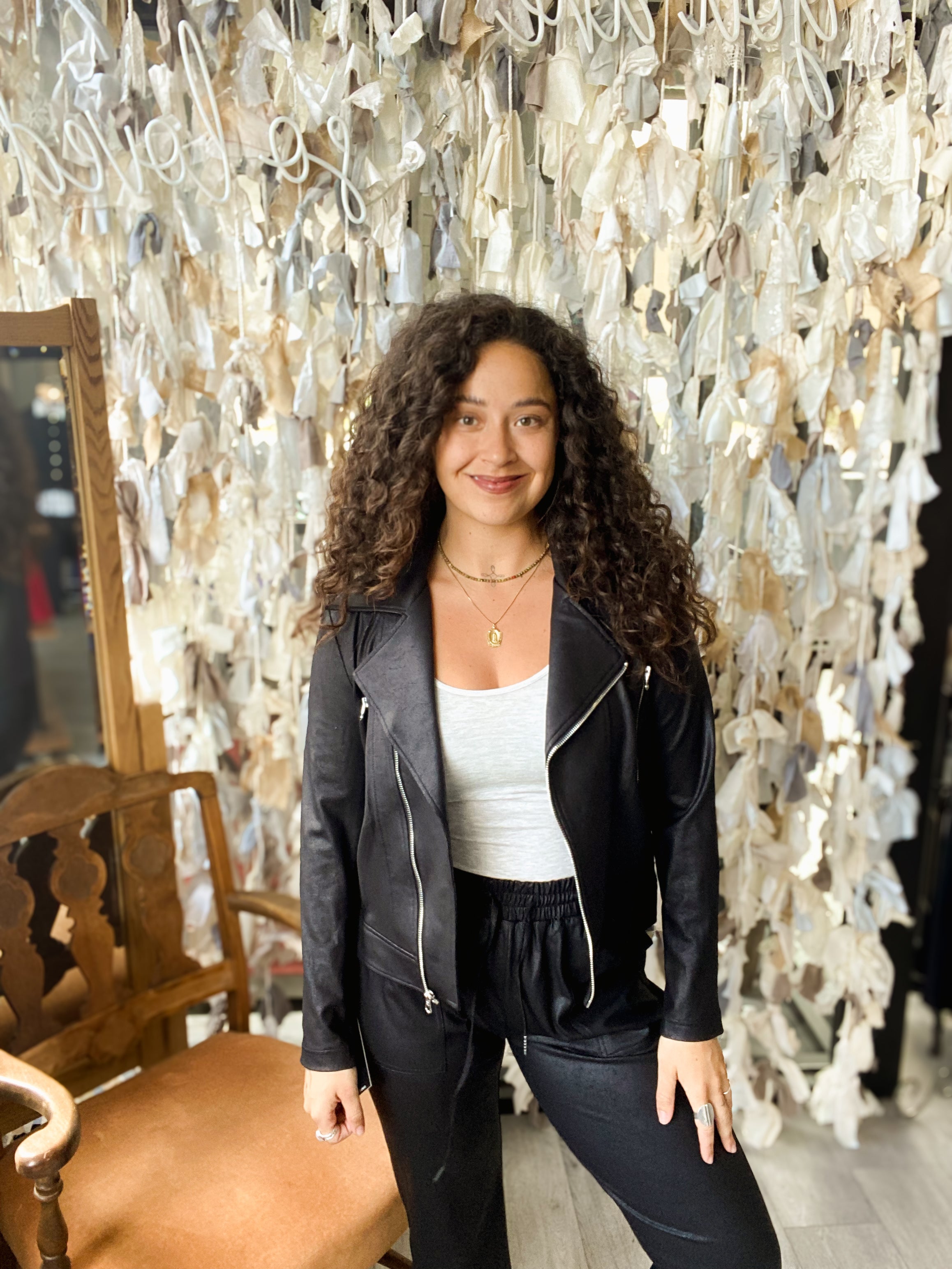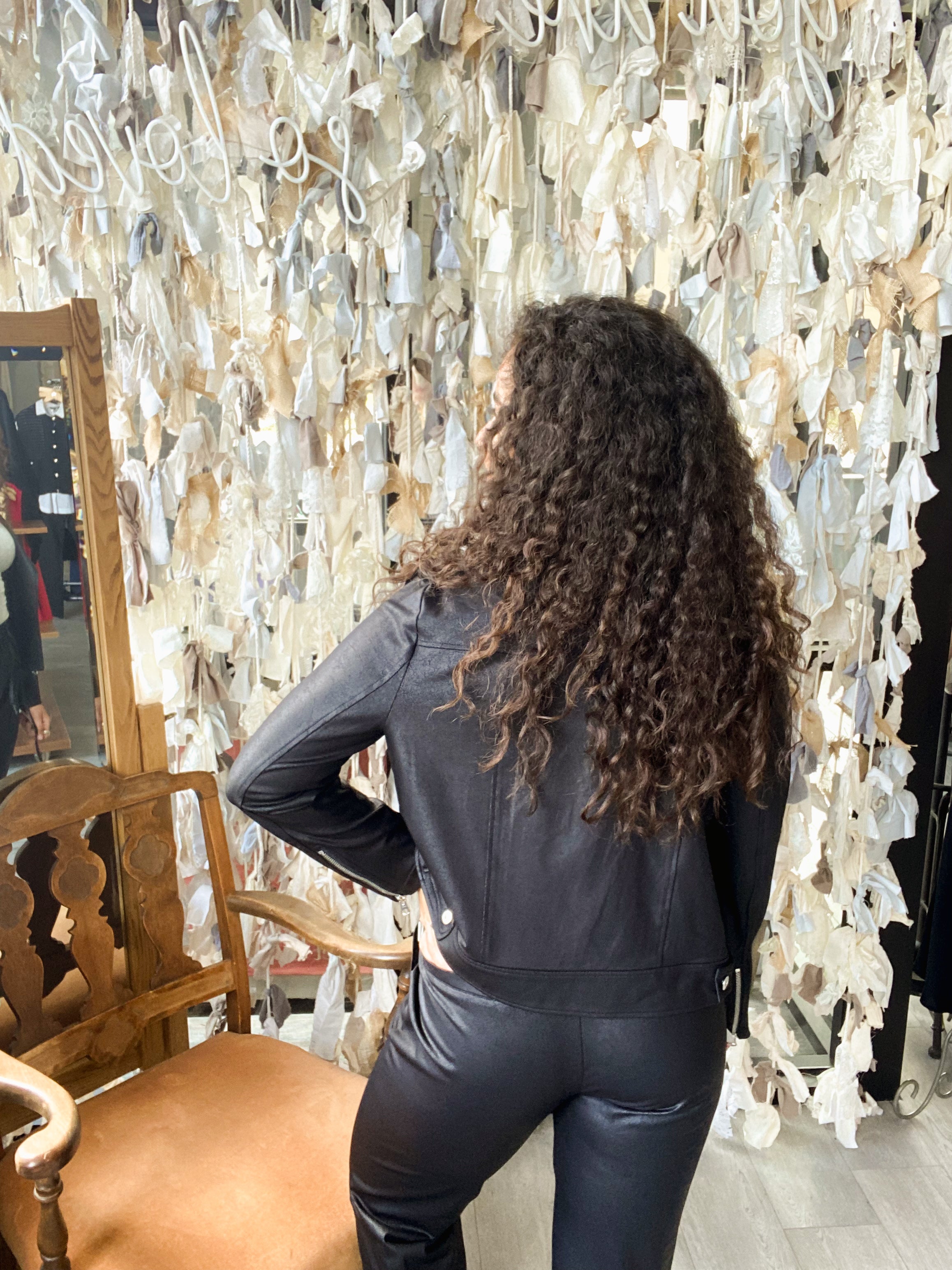 Liquid Leather High Waisted Jacket W/ Cuff Zip