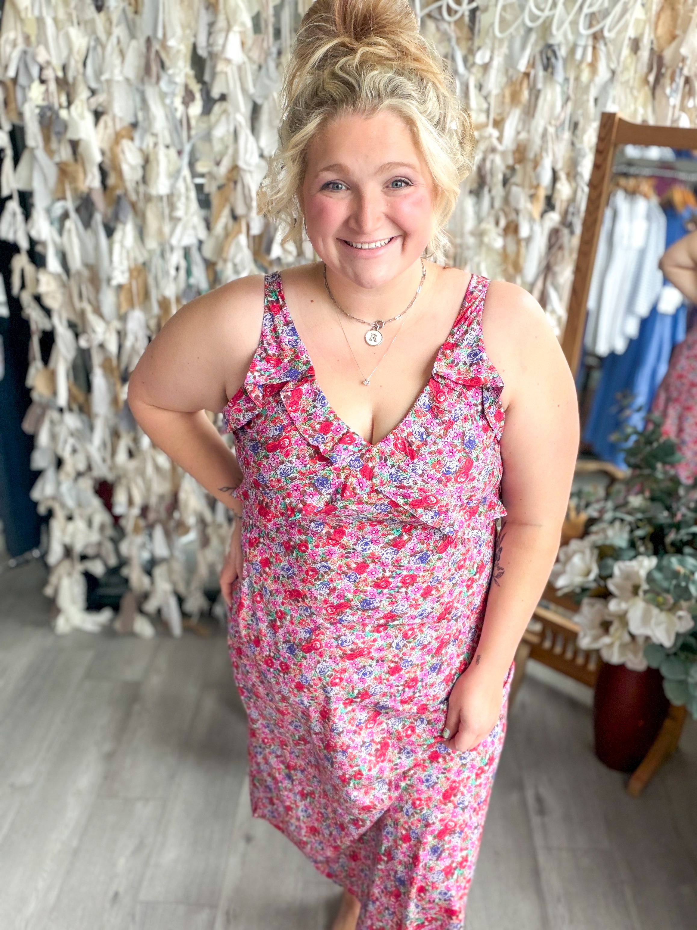 Sleeveless Dress W/ Ruffle Front Detail