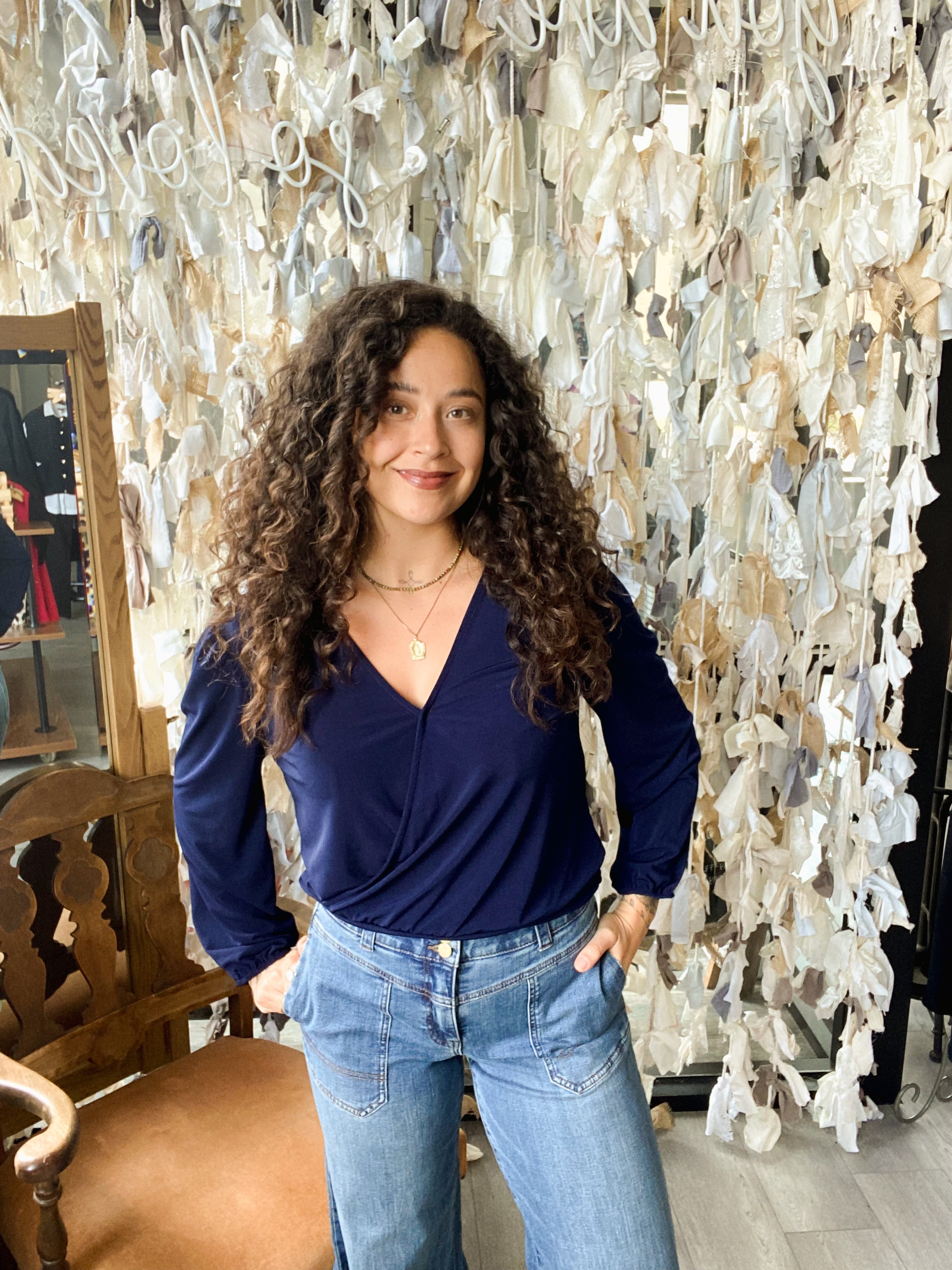 MB 3/4 Sleeve Mock Neck W/ Cables Detail