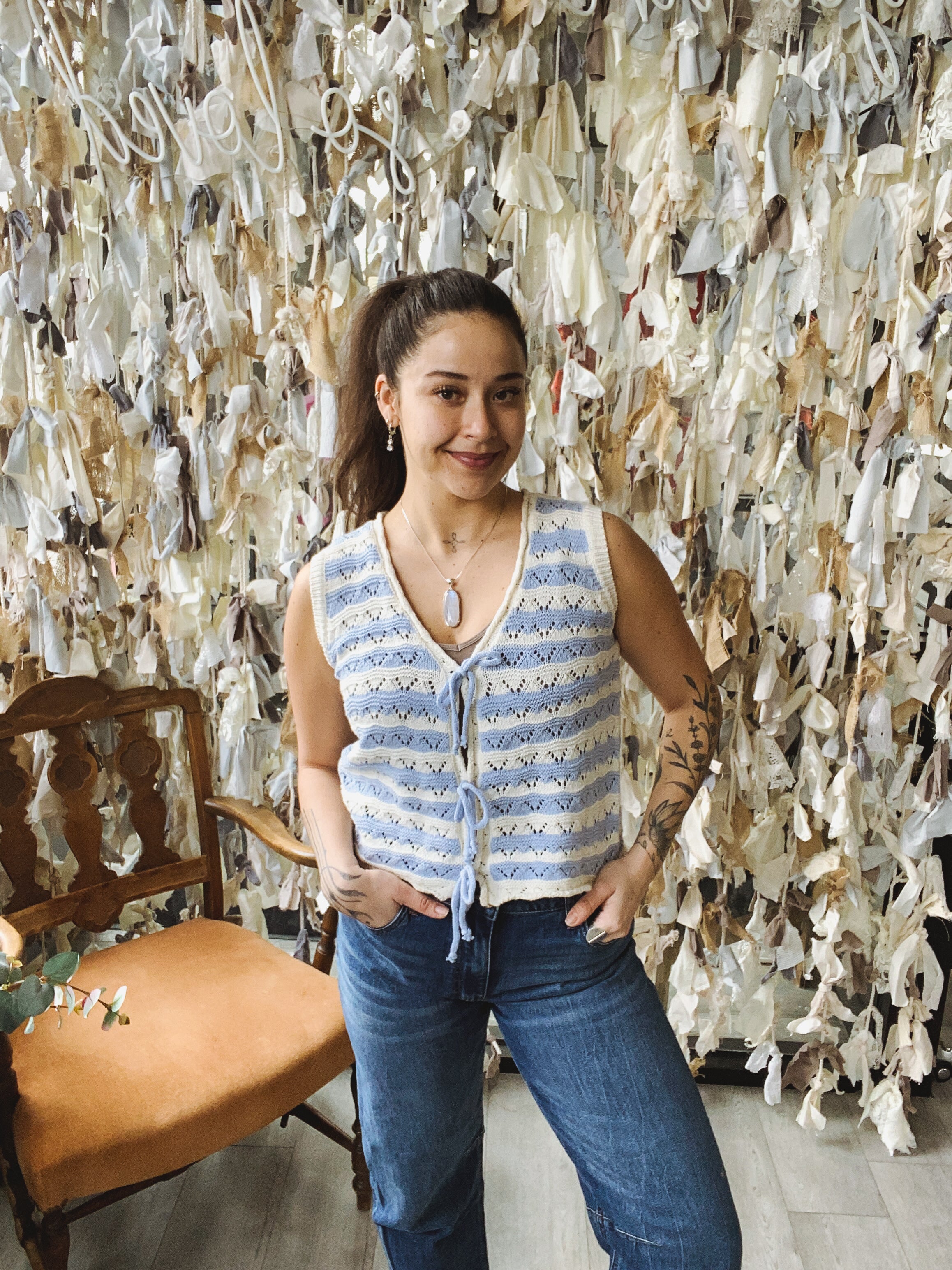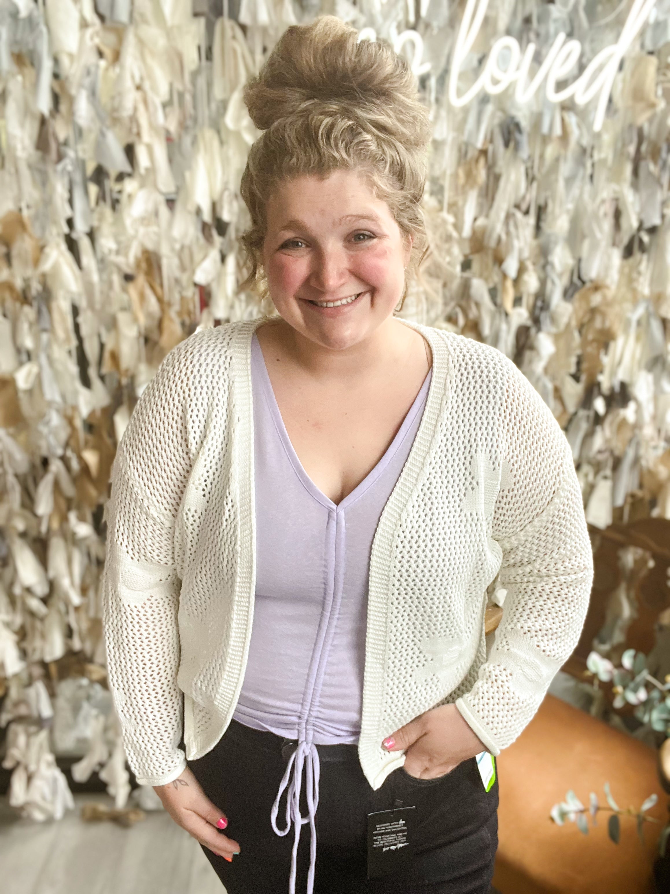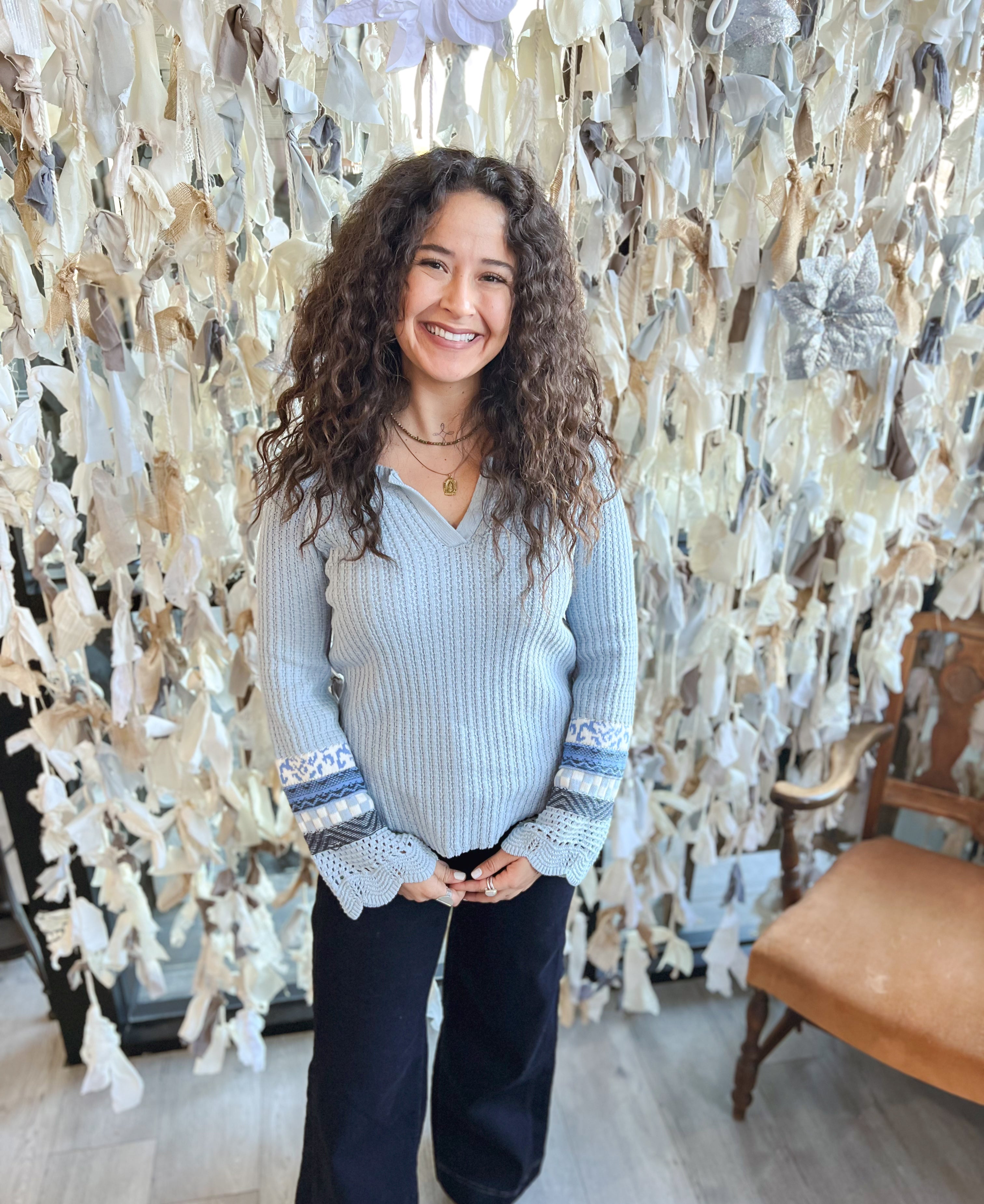 Tie Front Sweater W/ Scalloped Ribbed edge