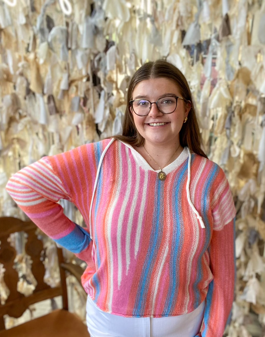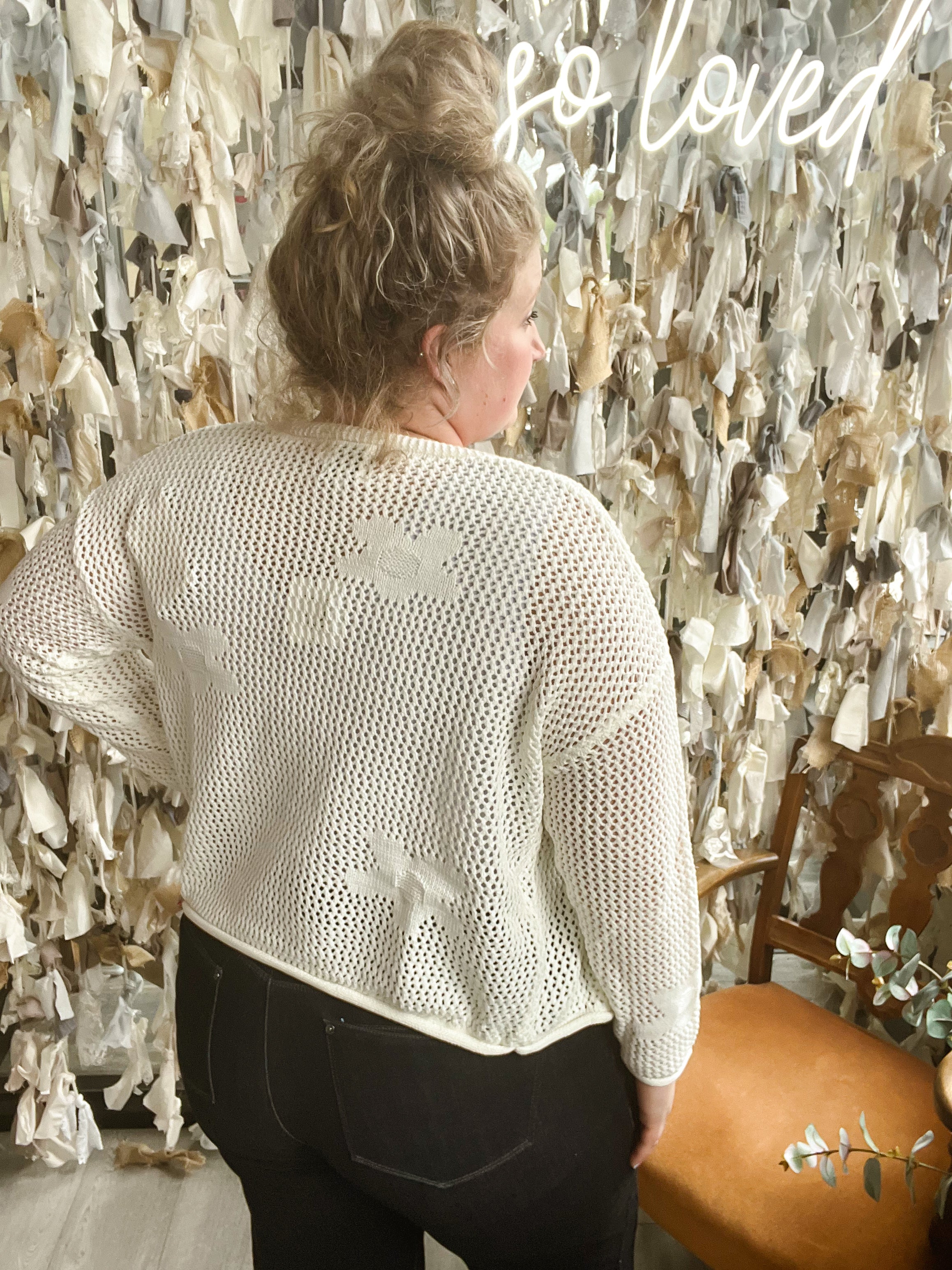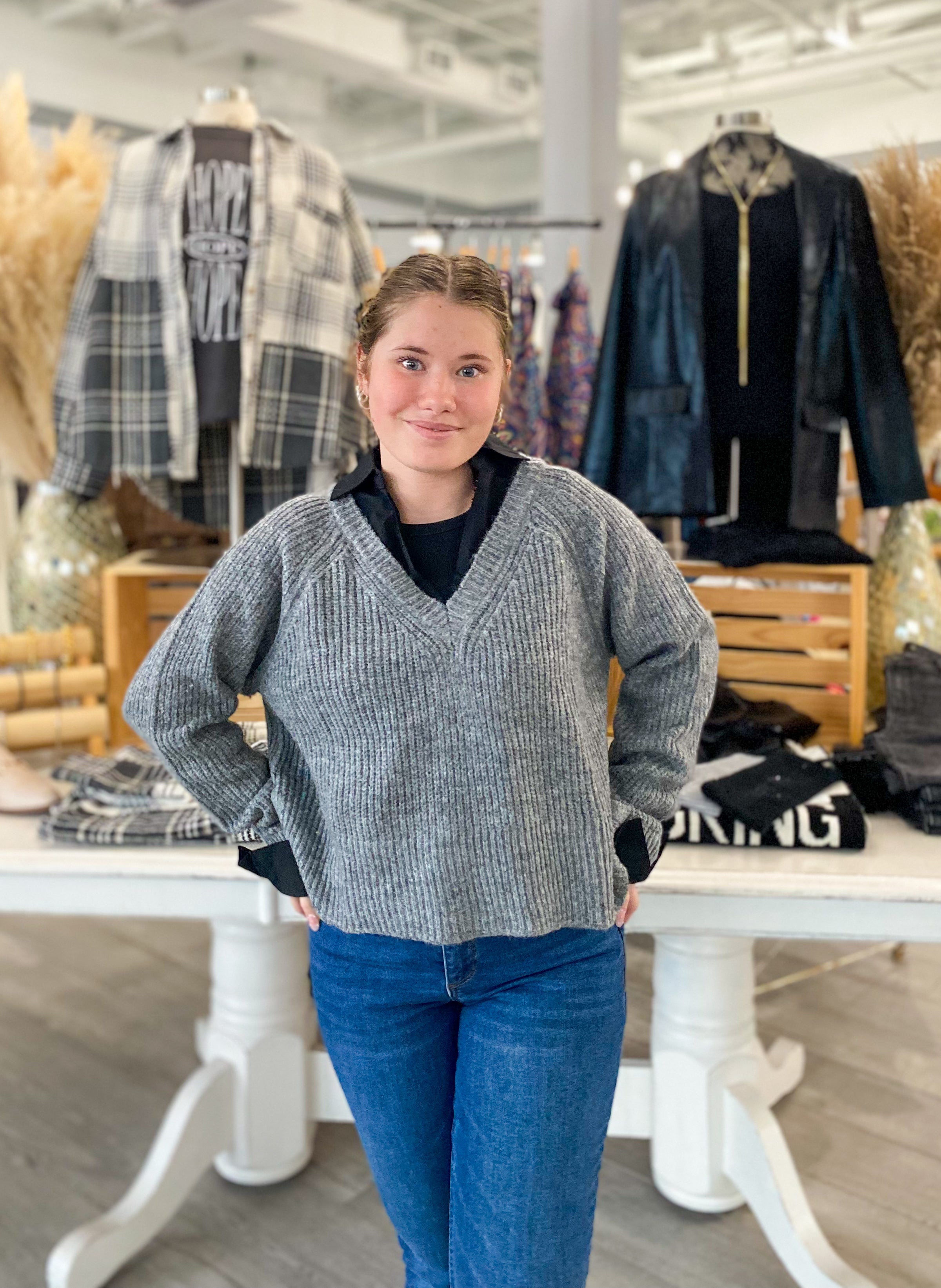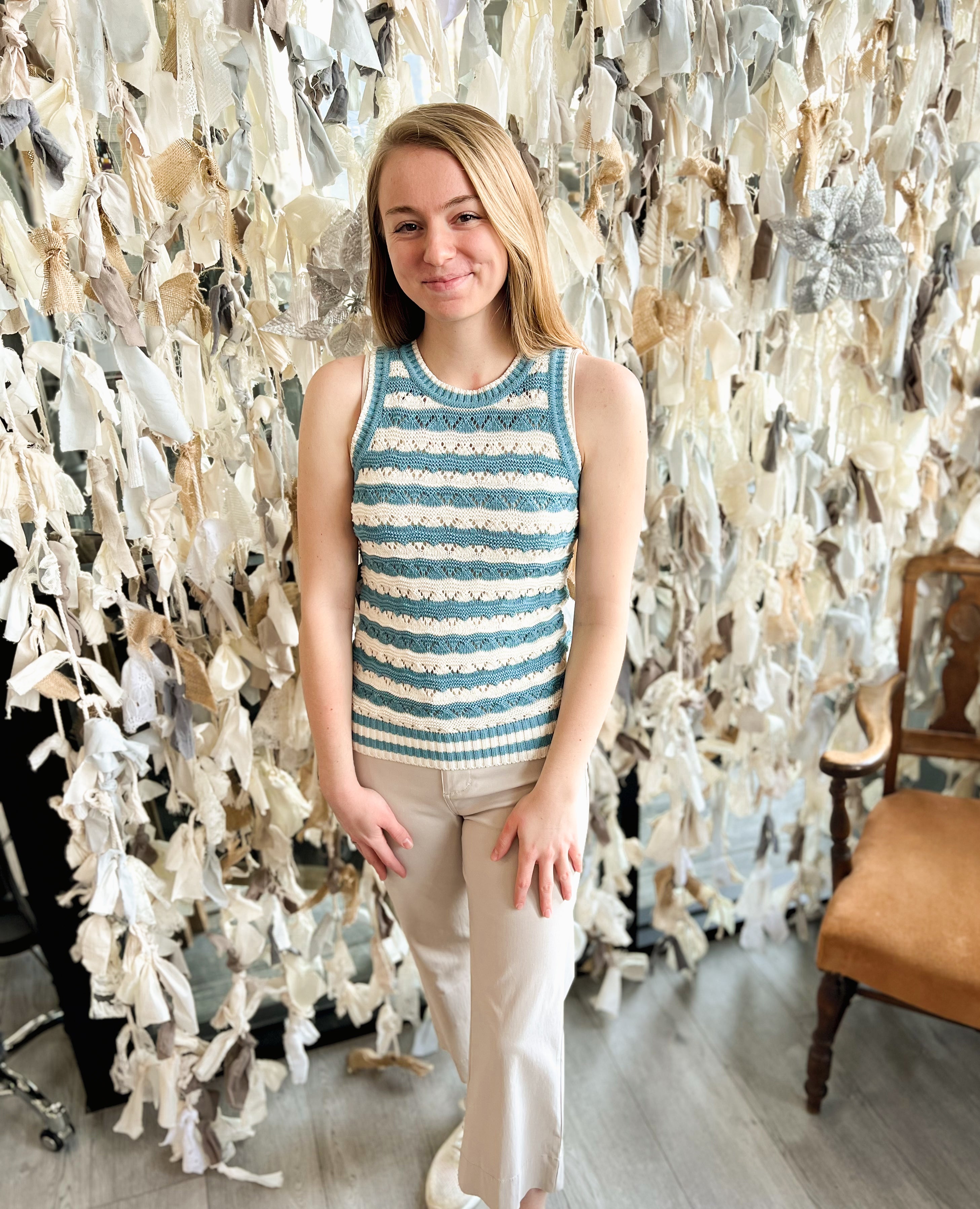 Tie Front Sweater W/ Scalloped Ribbed edge