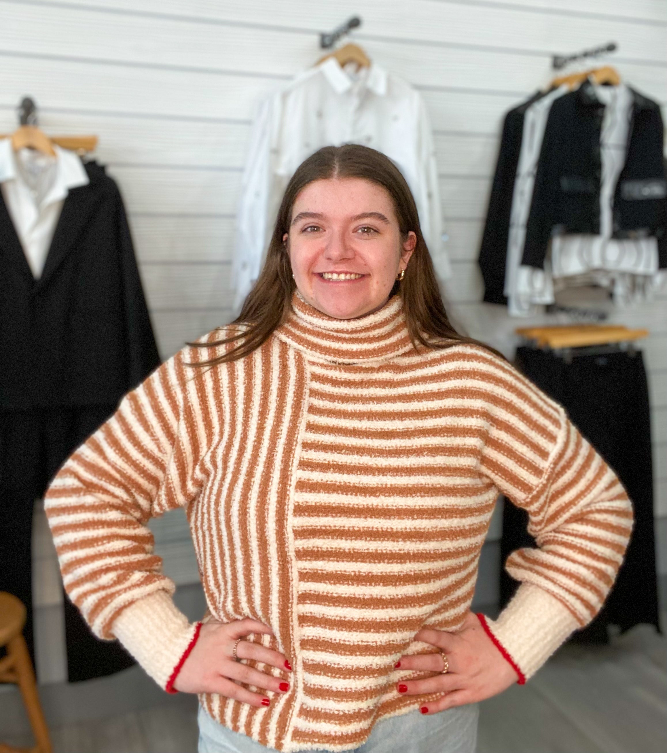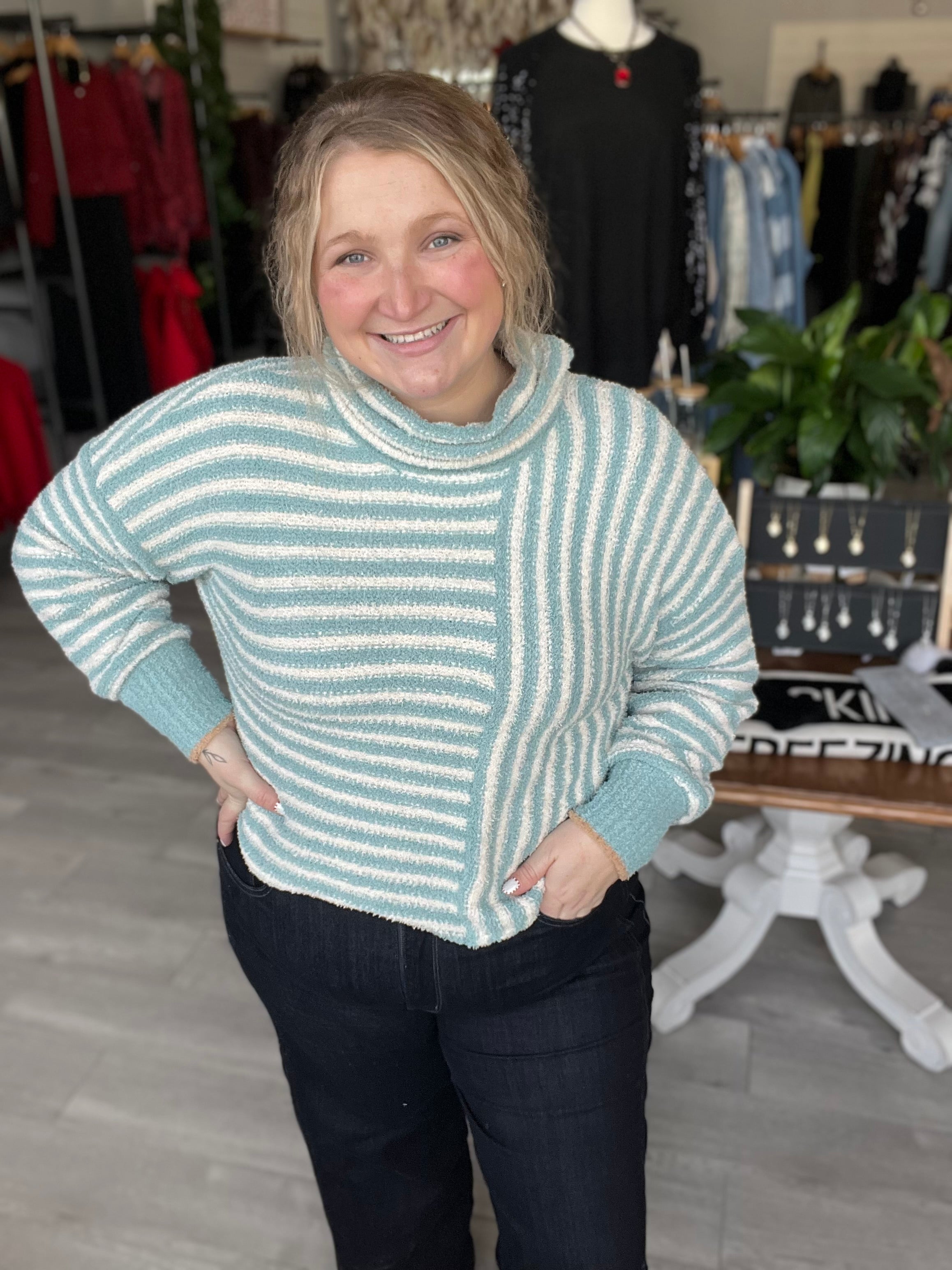 Multi Color Striped Half Zip Up Knit Sweater Top