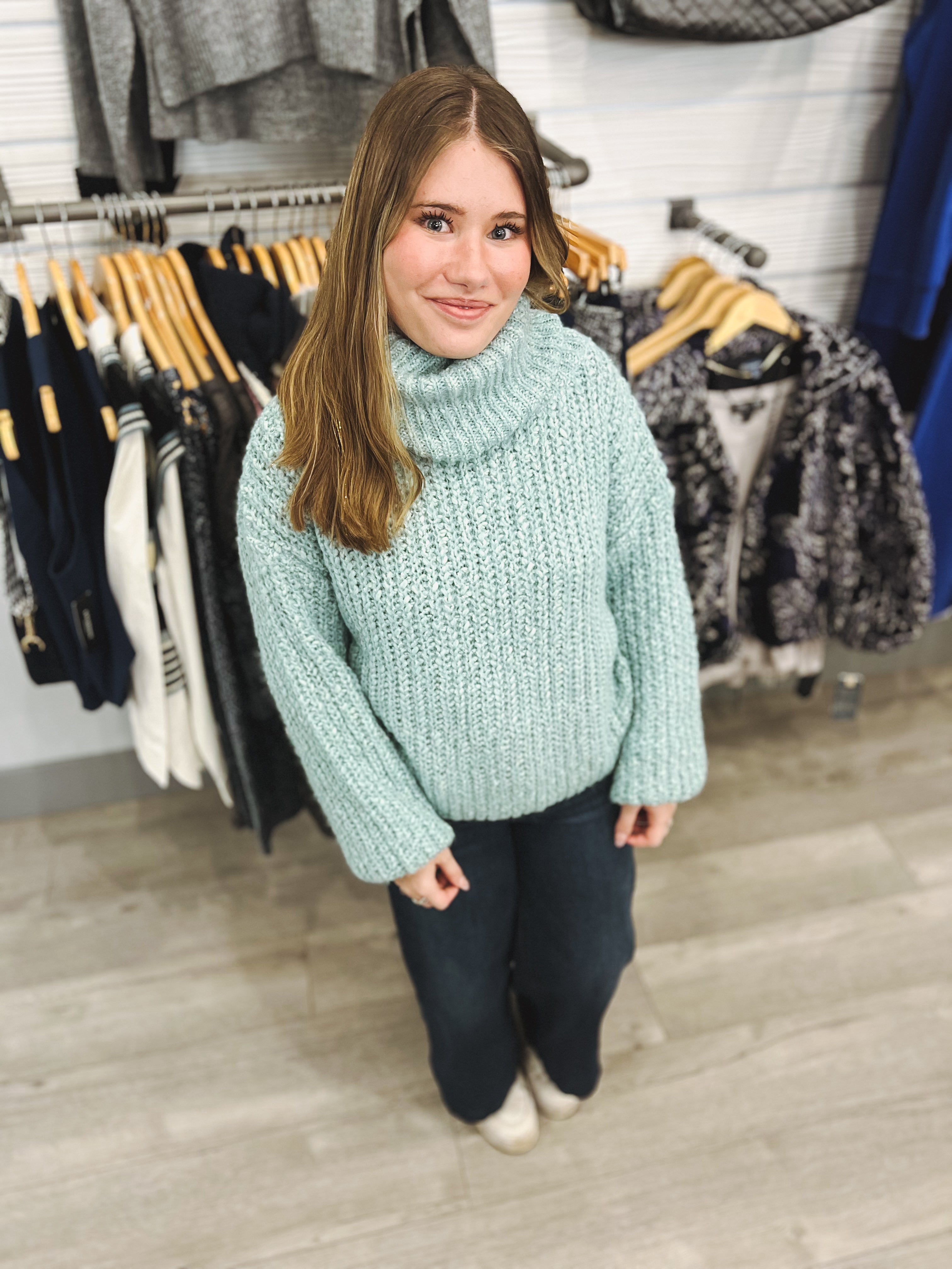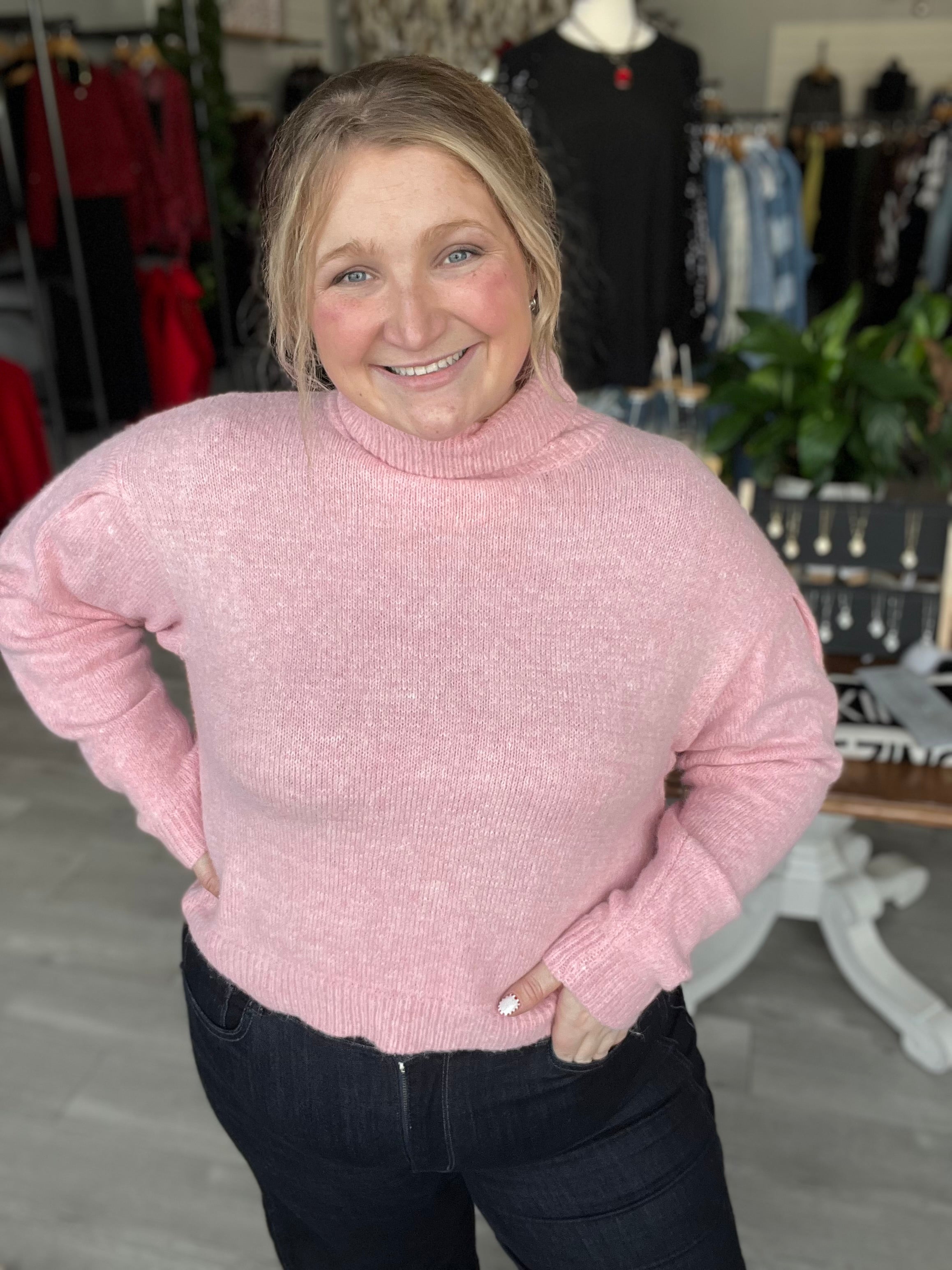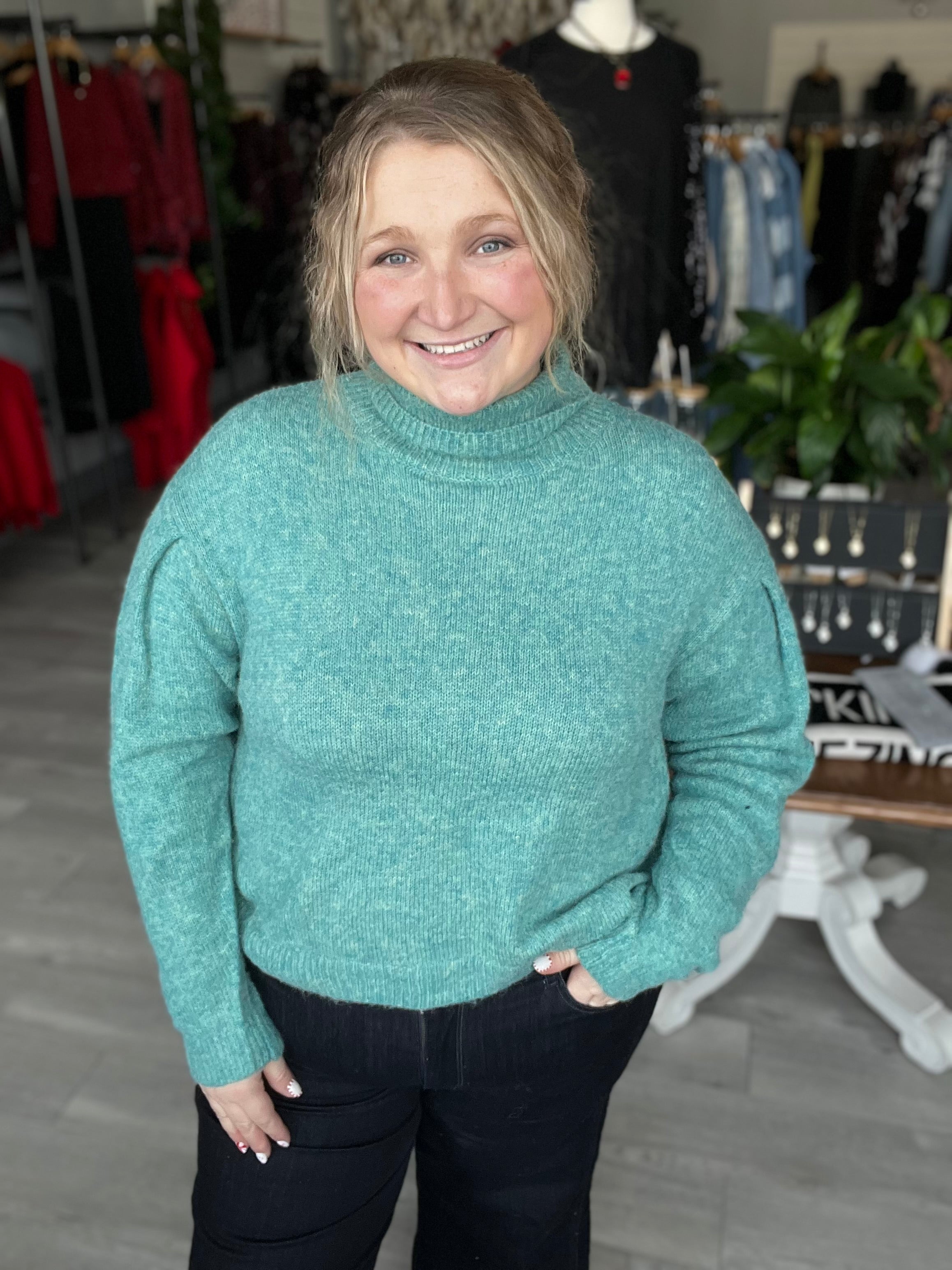 Loose Fit Turtleneck Pin-Tuck Long Sleeve Sweater