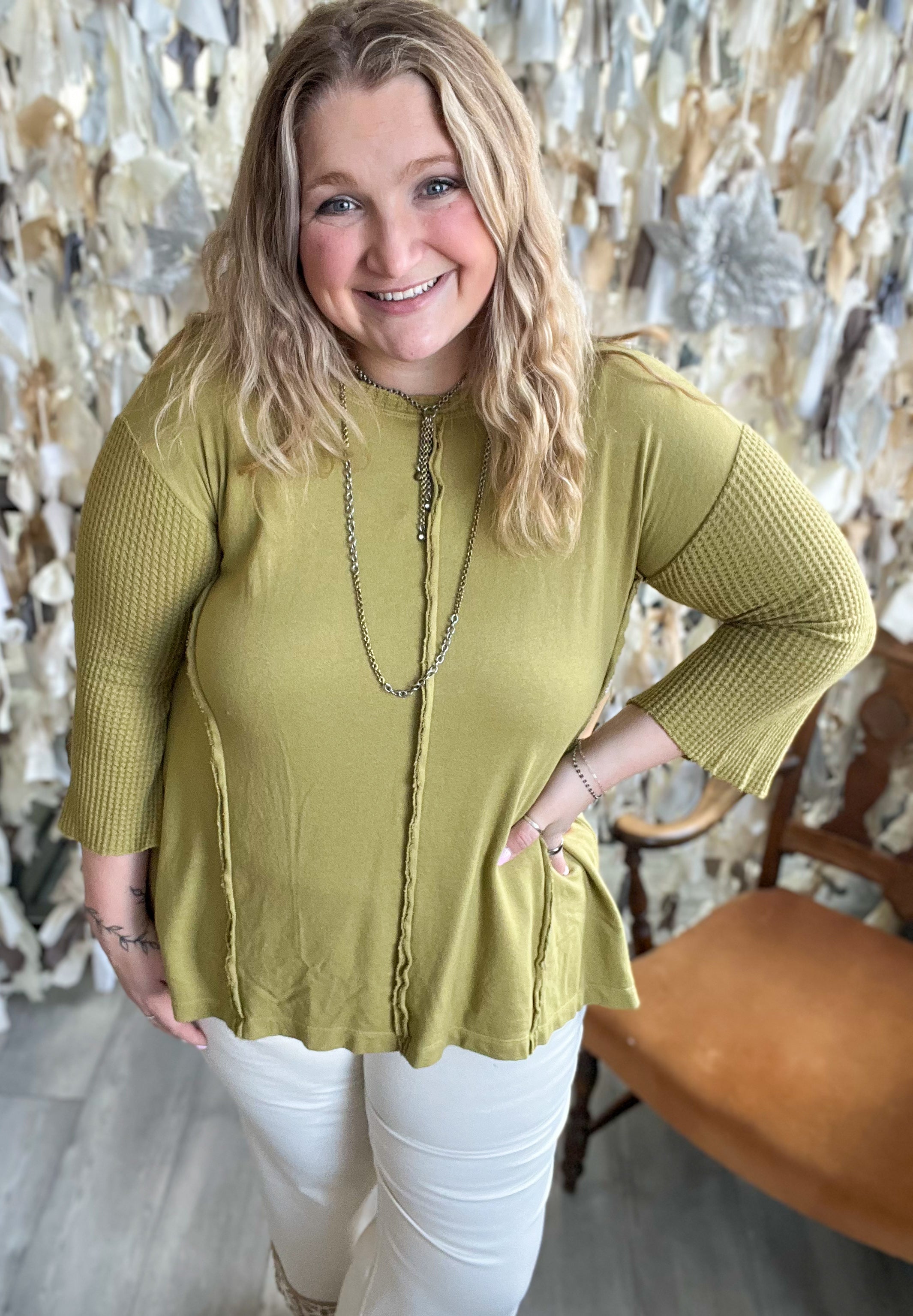French Terry Tun ic W/ Waffle Knit Sleeves