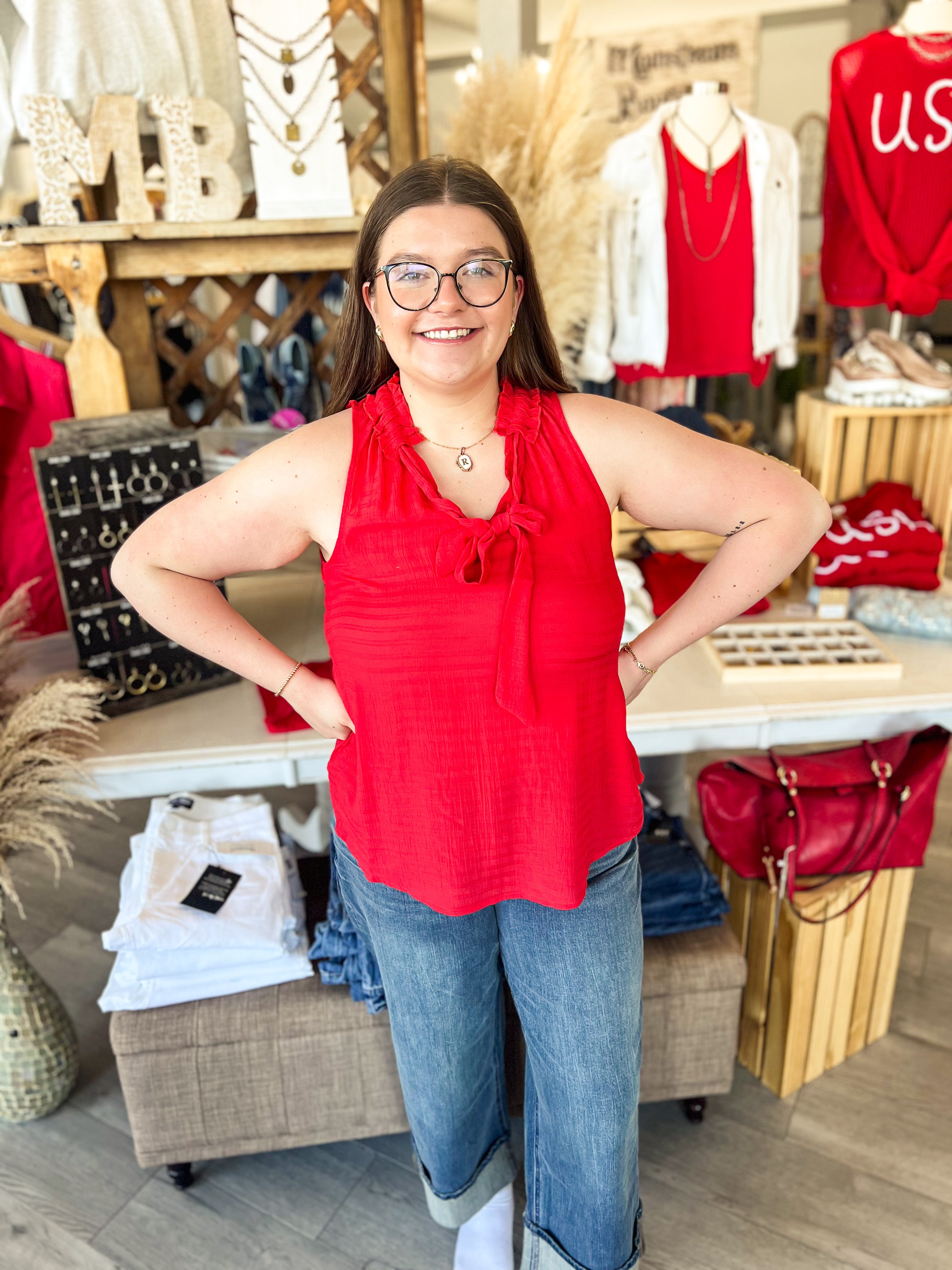 Sleeveless Blouse w/ Ruffled Neck S24 - HQ
