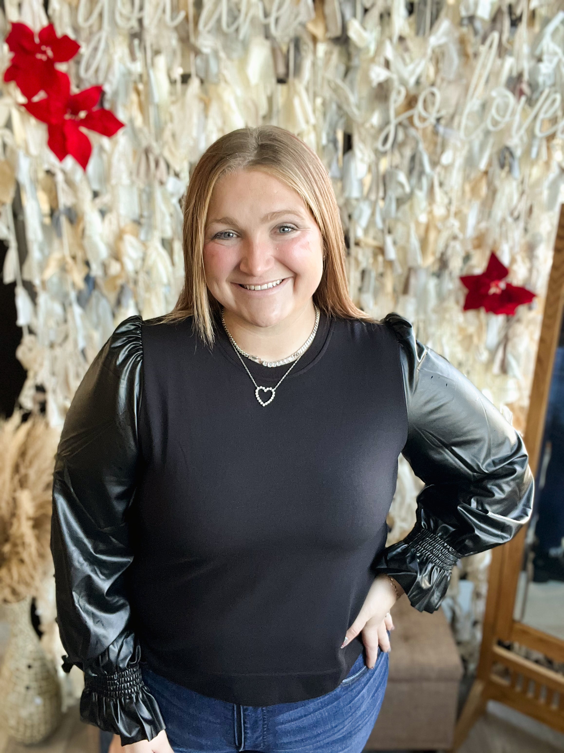 Mac and Me Pleather Long Sleeve Knit Top - HQ
