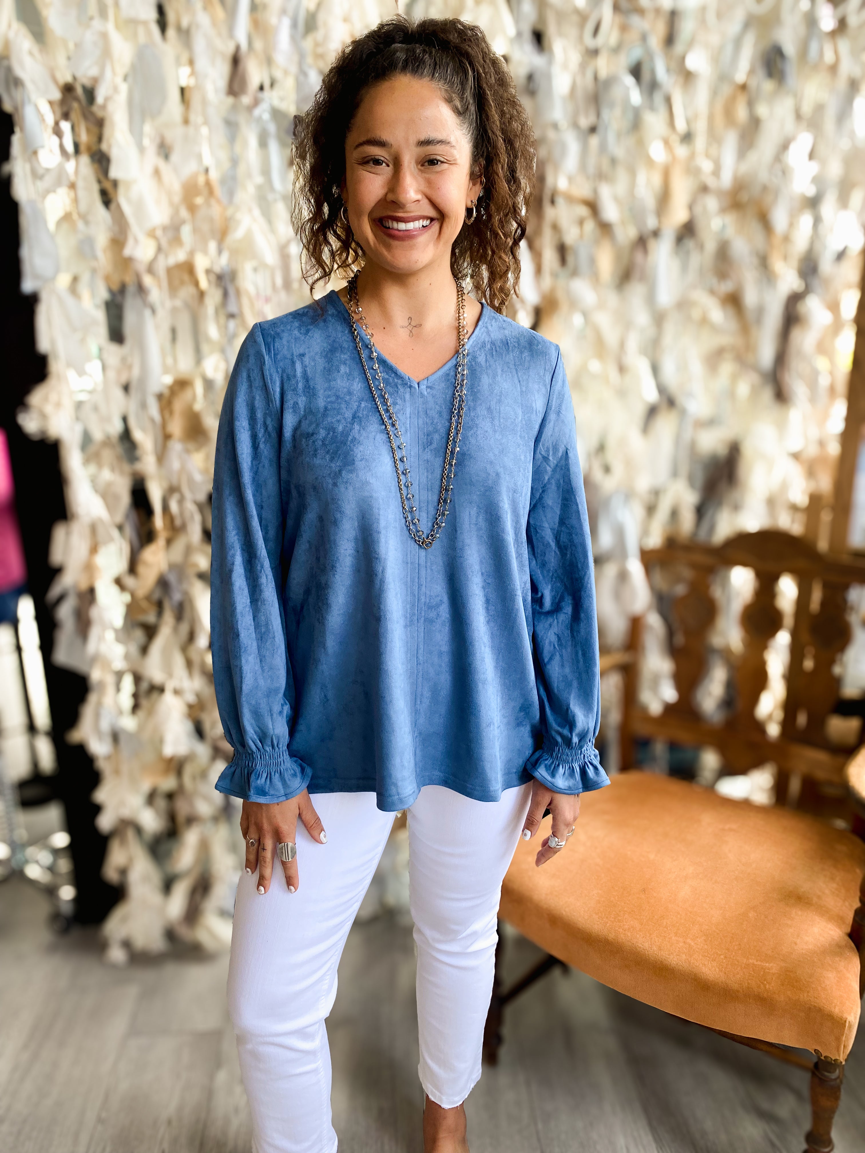 Suede Top W/ Bell Sleeve