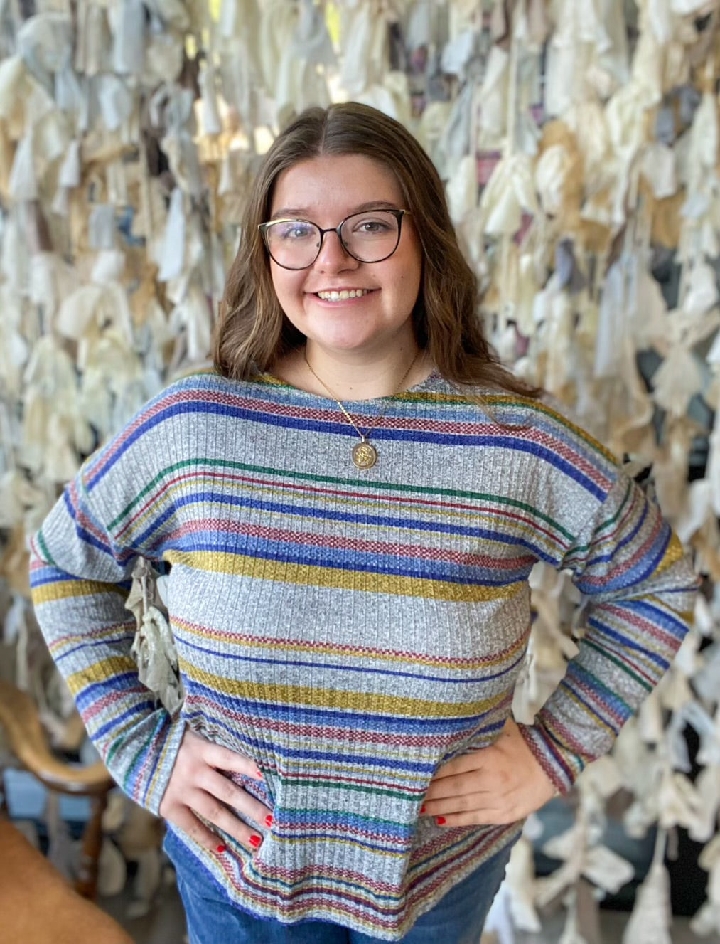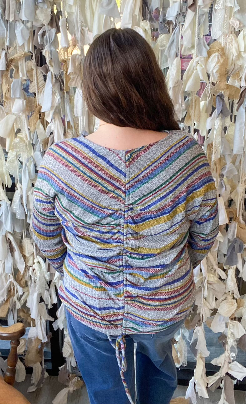 Long Sleeve Stripe top W/ Back Ruching