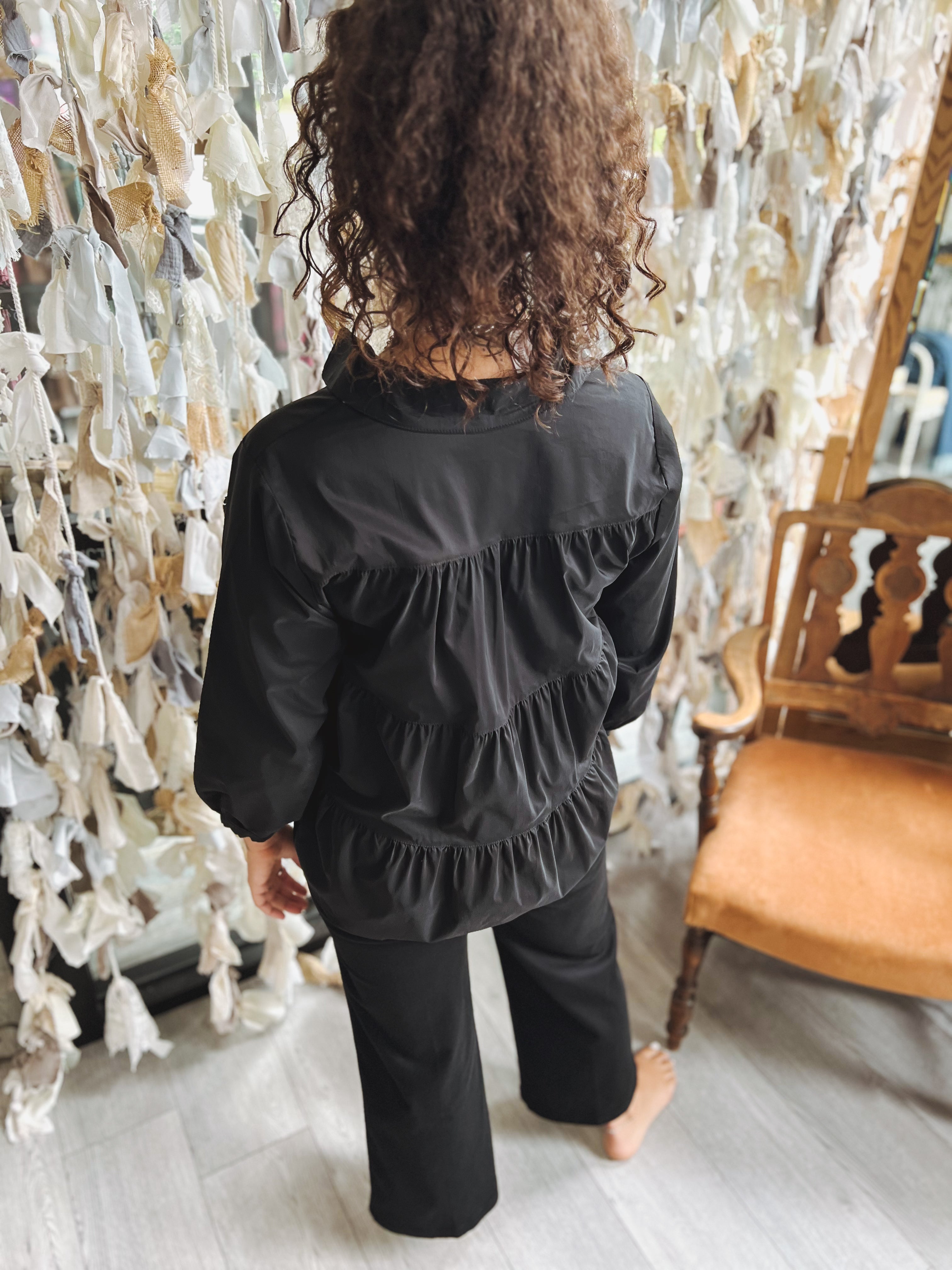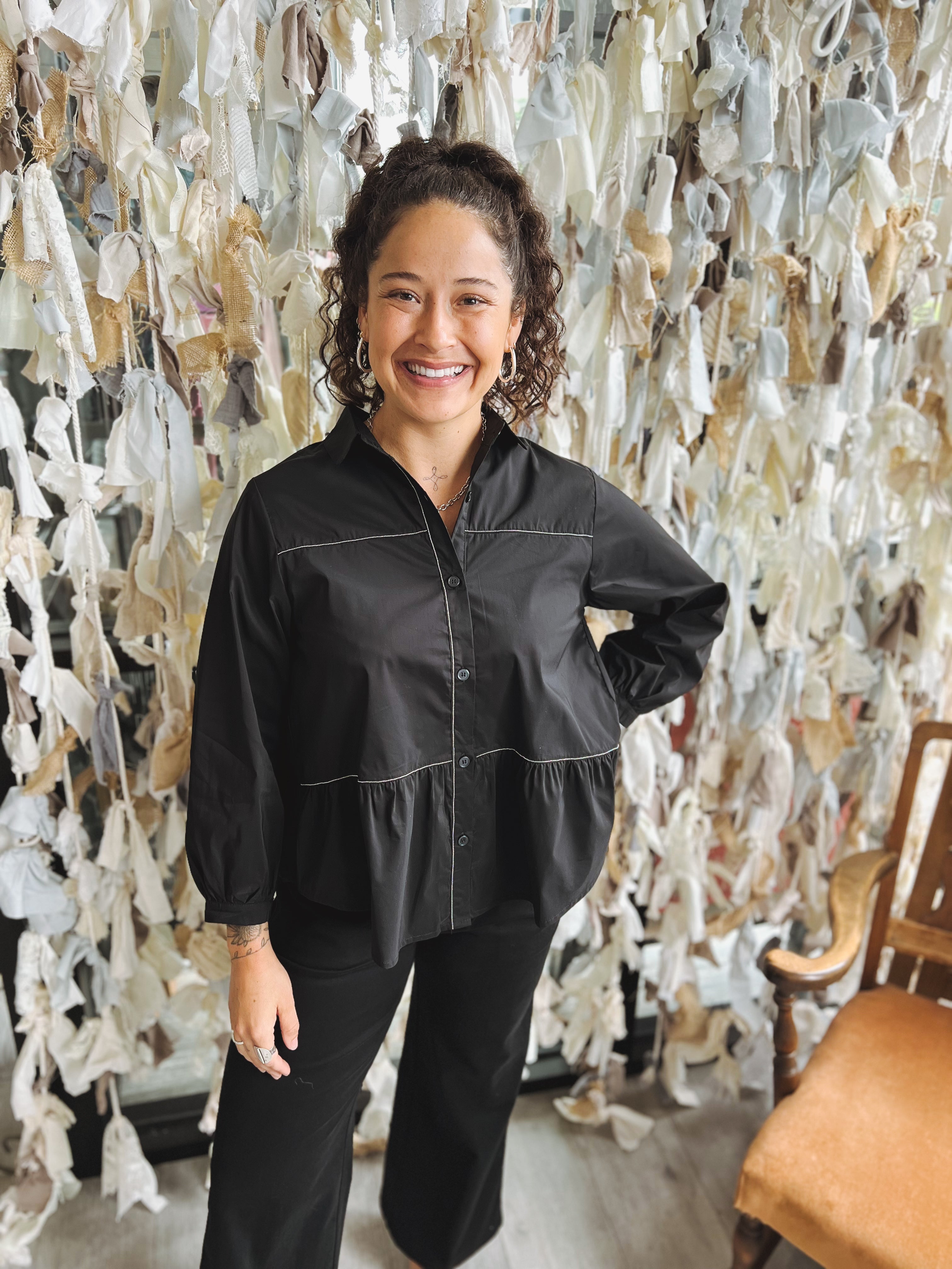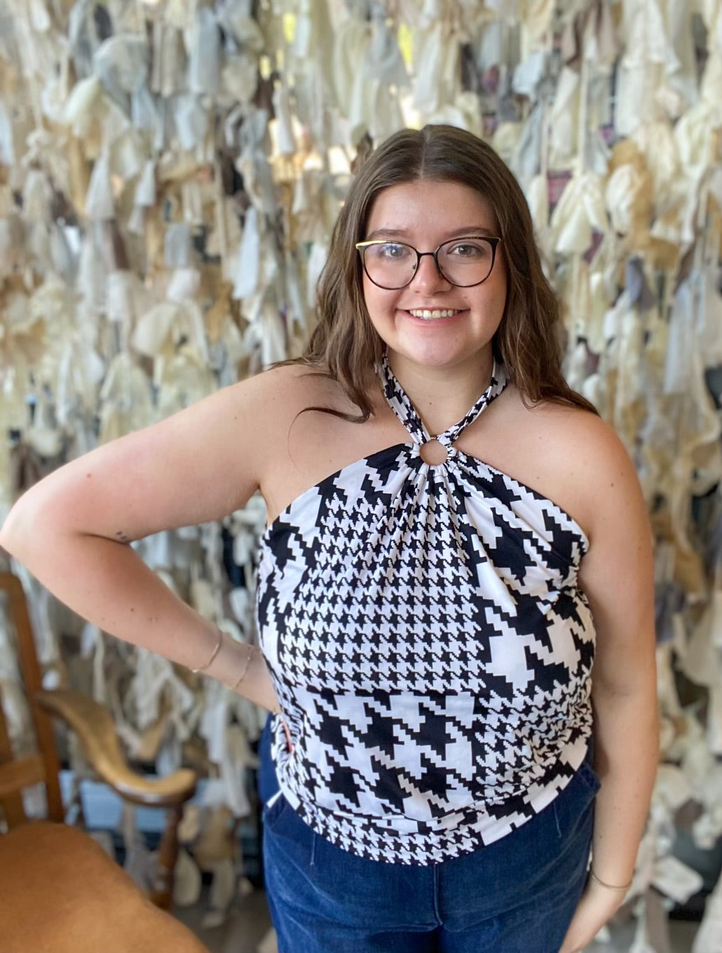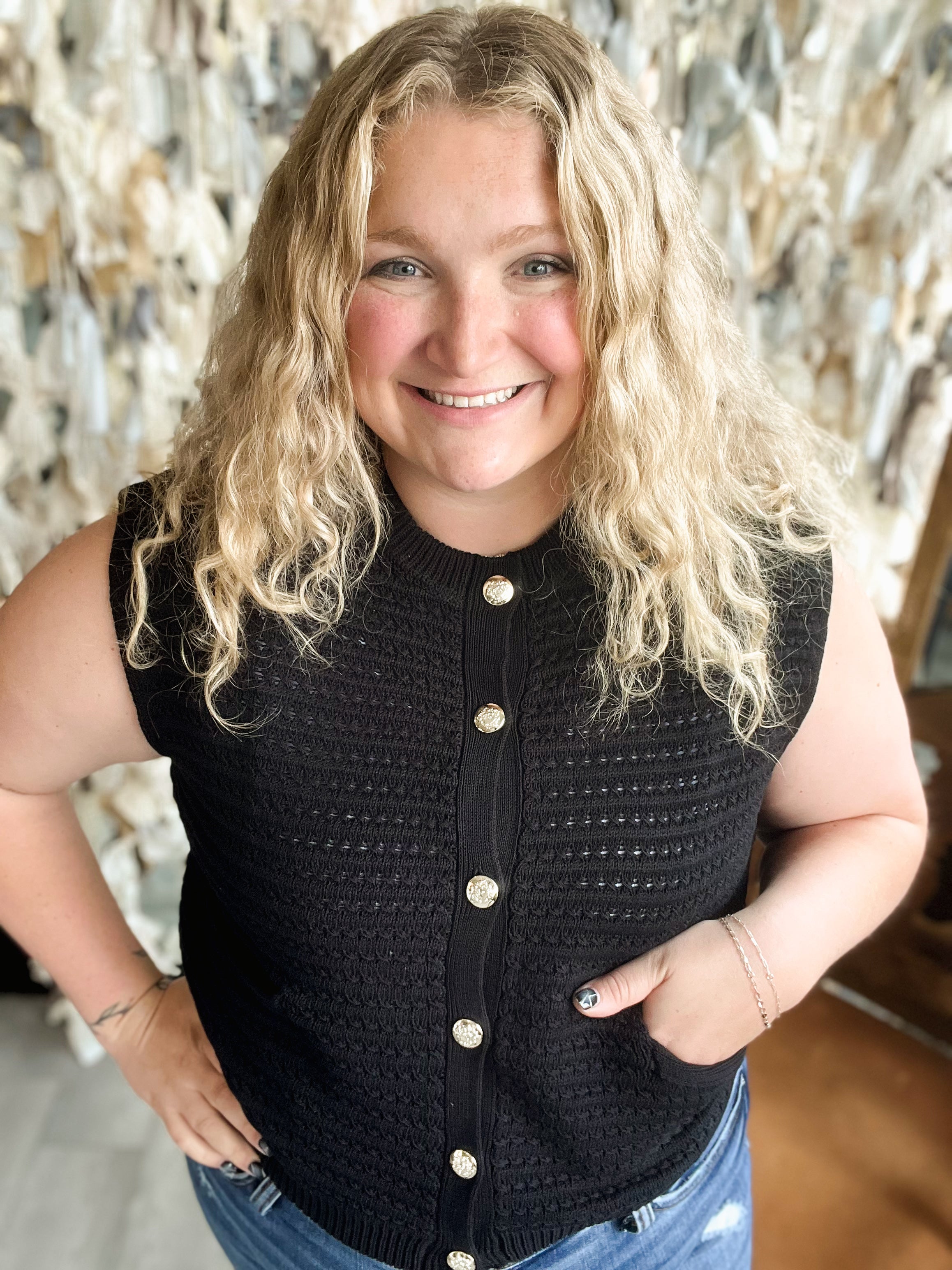 Tie Front Sweater W/ Scalloped Ribbed edge